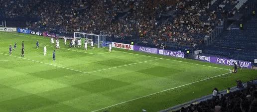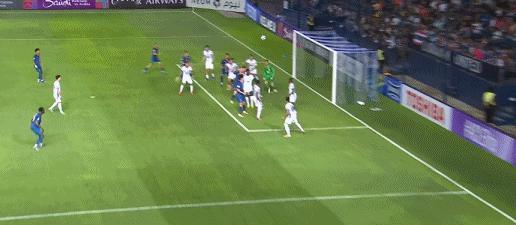 亚冠精英联赛目前已经0比2落后,对方到现在一共获得两个角球机会,一个直接头球破门
