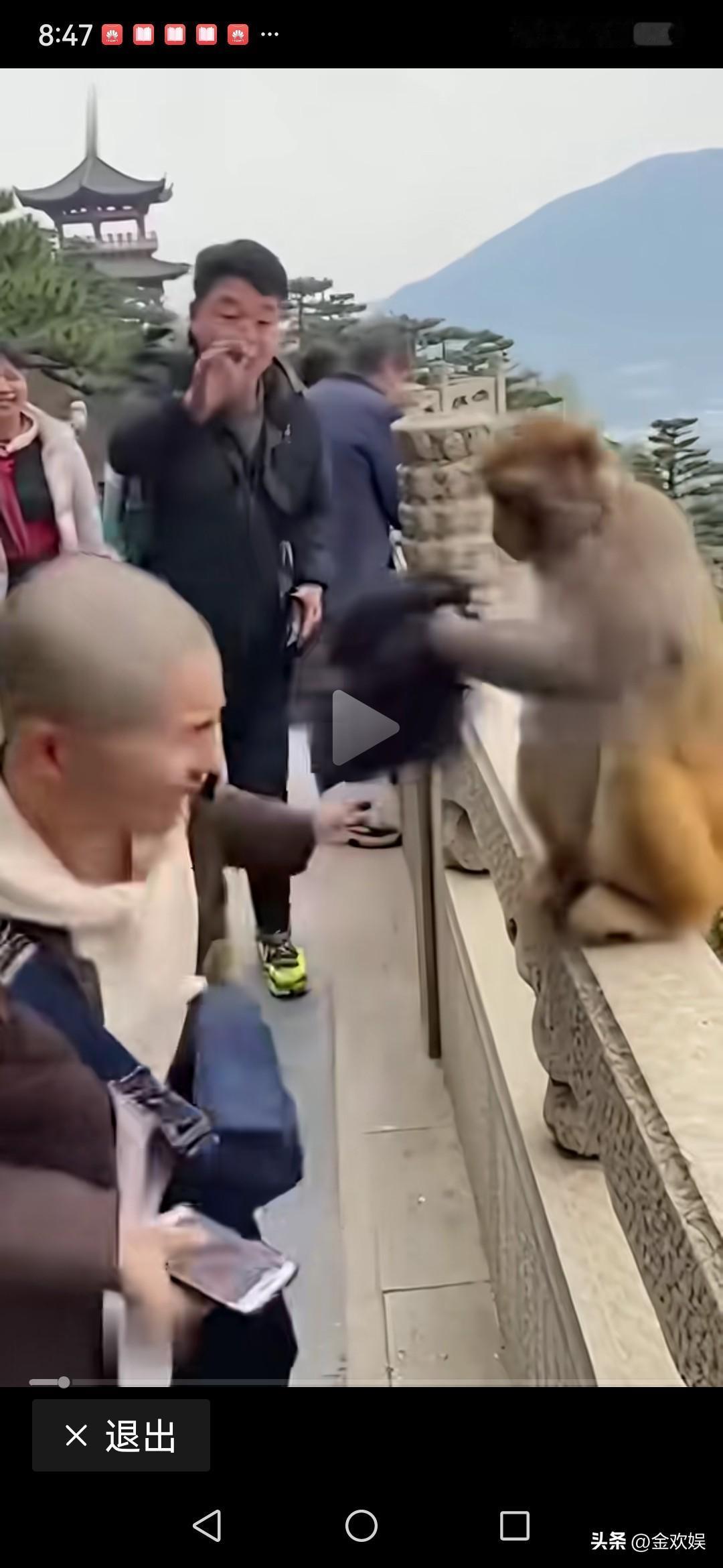 太神奇了,这猴子怎么看出这位女士戴的是假发呢? 刚才看了一则视频,在视频中,人们正在旅游区观看猴子,一位黑发如云的阿姨也凑上去,想近距离看看猴子,然而,令人意想不到的事发生了。 猴子突然向阿姨伸出手来,阿姨还没回过神来,便惨变光头佬了,而此时,她的假发已在猴子手中,猴子开心地把阿姨的假发戴到自己的头上,然后穿过马路爬上树去,阿姨在后面声撕力竭的大喊:“快还我假发!快还我假发。”猴子头都不回一下。 周围的人都忍不住哈哈大笑起来。 问题来了,近距离看猴子的游客那么多,猴子是如何看出阿姨戴的是假发呢?真是匪夷所思。 假发是人类美容的产物,是人类特有的东西,猴子怎么知道这秘密呢?