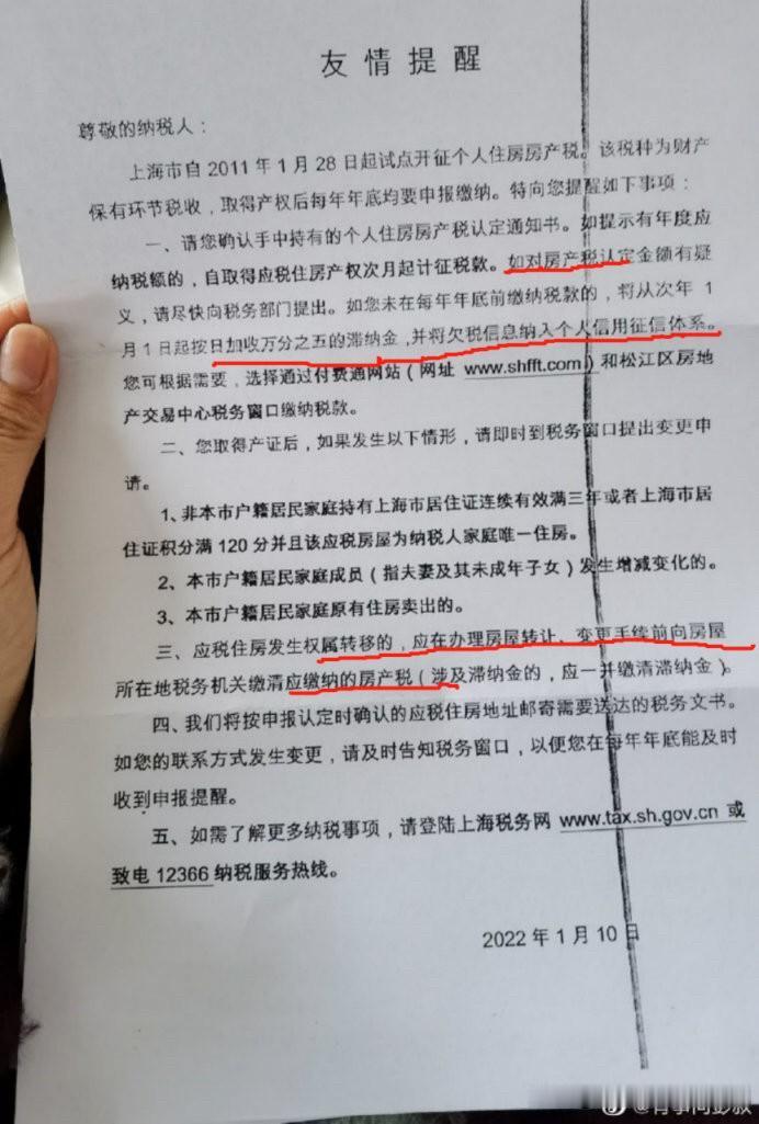 大家也不用担心交不起房地产税会怎么办。 这是上海那边房产税试点的时候用的规定。 如果不交的话,会有两个处罚,一个纳入征信,一个是房子无法买卖,必须要结清以后,才能买卖。