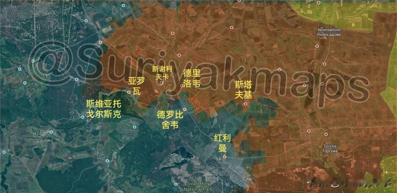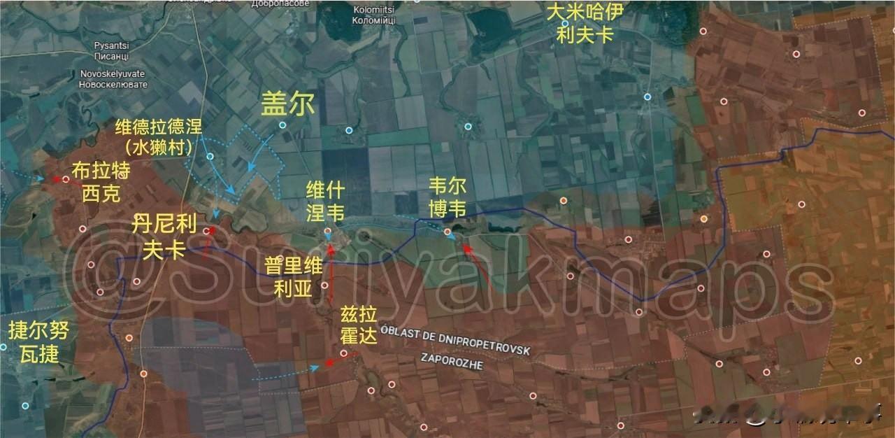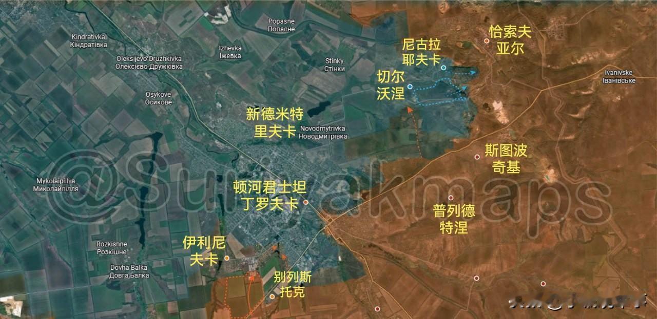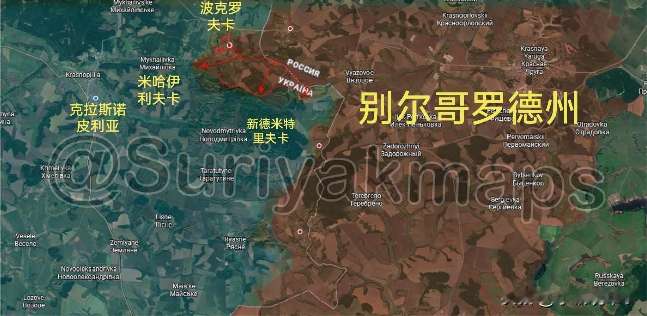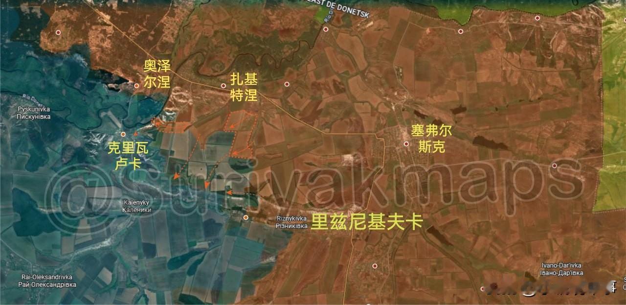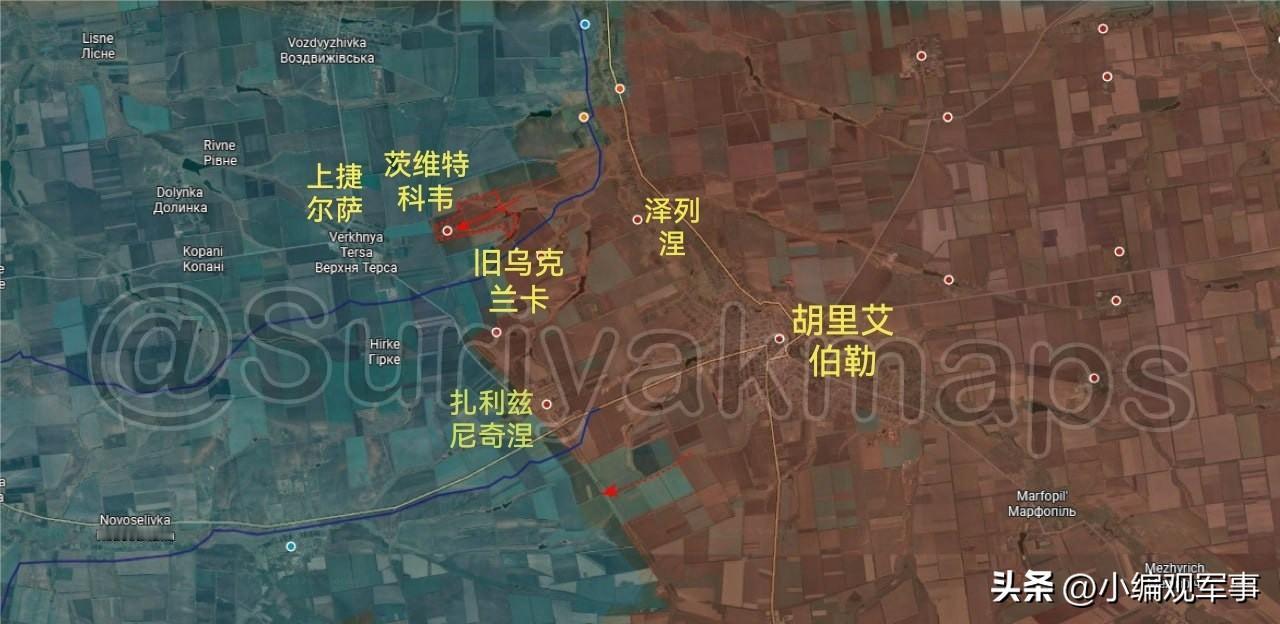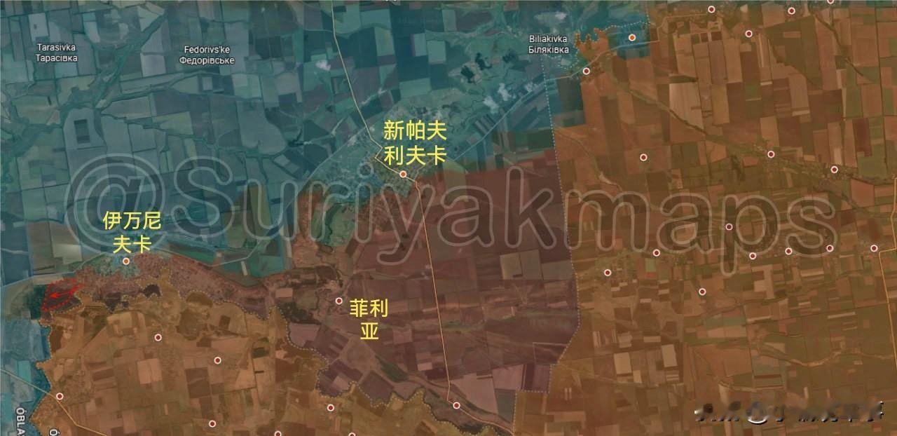 Suriyak更新2月15-16日俄乌战报(供参考): 1.苏梅州前线: 过去八天里,俄军完全控制了波克罗夫卡村,以及乌俄边境附近的一些阵地,直逼米哈伊利夫卡村(图一)。 2.哈尔科夫州前线: 俄军继续在佩特罗帕夫利夫卡村东南部区域推进(图二)。 3.顿涅茨克州北部前线: 俄军控制了德罗比舍韦村以东的一些阵地(图三)。 4.塞弗尔斯克方向前线: ①过去一周里,俄军继续在扎基特涅村以南和里兹尼基夫卡村推进(图四)。 ②俄军在北顿涅茨河附近的高地包围了部分乌军士兵,控制了克里瓦卢卡村以东的部分战壕,俄军士兵正从该区域渗透进该村(图四)。 5.恰索夫亚尔—顿河君士坦丁罗夫卡前线: ①上周,乌军从切尔沃涅村东南部和尼古拉耶夫卡村渗透至恰索夫亚尔市的舍夫琴卡区(图五)。 ②乌军控制了恰索夫亚尔市西郊垃圾处理厂。而俄军则从南部渗透至切尔沃涅村(图五)。 ③俄军继续向顿河君士坦丁罗夫卡市西南部渗透,并控制了别列斯托克镇以东的阵地(图五)。 6.第聂伯罗彼得罗夫斯克州前线: ①过去六天里,俄军在伊万尼夫卡村以西的森林区继续推进(图六)。 ②维德拉德涅(水獭村)再次被乌军控制(图七)。 ③乌军继续向南推进,并在布拉特西克村、兹拉霍达村、维什涅韦村和韦尔博韦村实施渗透行动,但被俄军击退(图七)。 7.扎波罗热州前线: ①俄军继续在胡里艾伯勒市周边展开攻势,攻占了茨维特科韦村,同时行动仍在继续,以确保胡里艾伯勒市西南铁路线以东所有阵地的安全(图八)。 ②乌军继续加强攻势。在夺回斯捷普诺希尔斯克镇以北一些阵地后,乌军趁着乌军防线薄弱之际,向南发起新一轮攻势,并渗透至斯捷普诺希尔斯克镇和皮拉夫尼村(图九)。