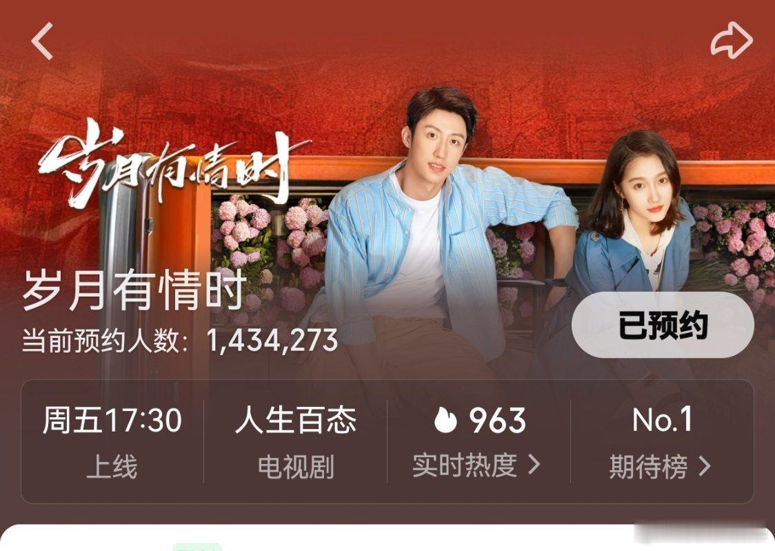 电视剧岁月有情时黄景瑜张小满 预约超140万~~这片子定档比罚罪2 正常一点,有了一点宣发时间,罚罪2 最后20分钟官宣空袭的时候,我连最后预约数都没来得及看一眼。
