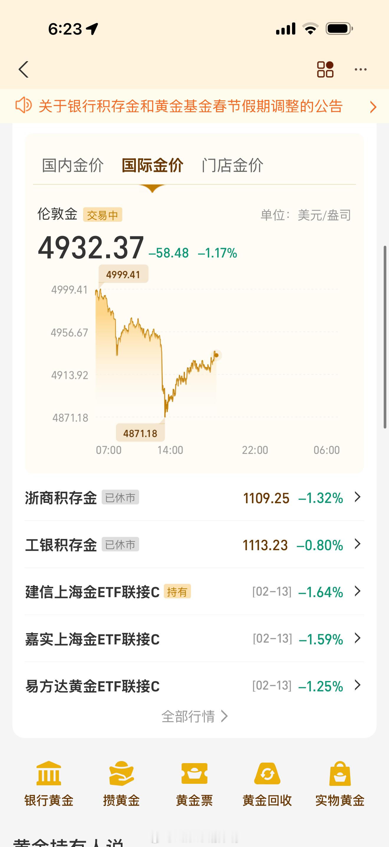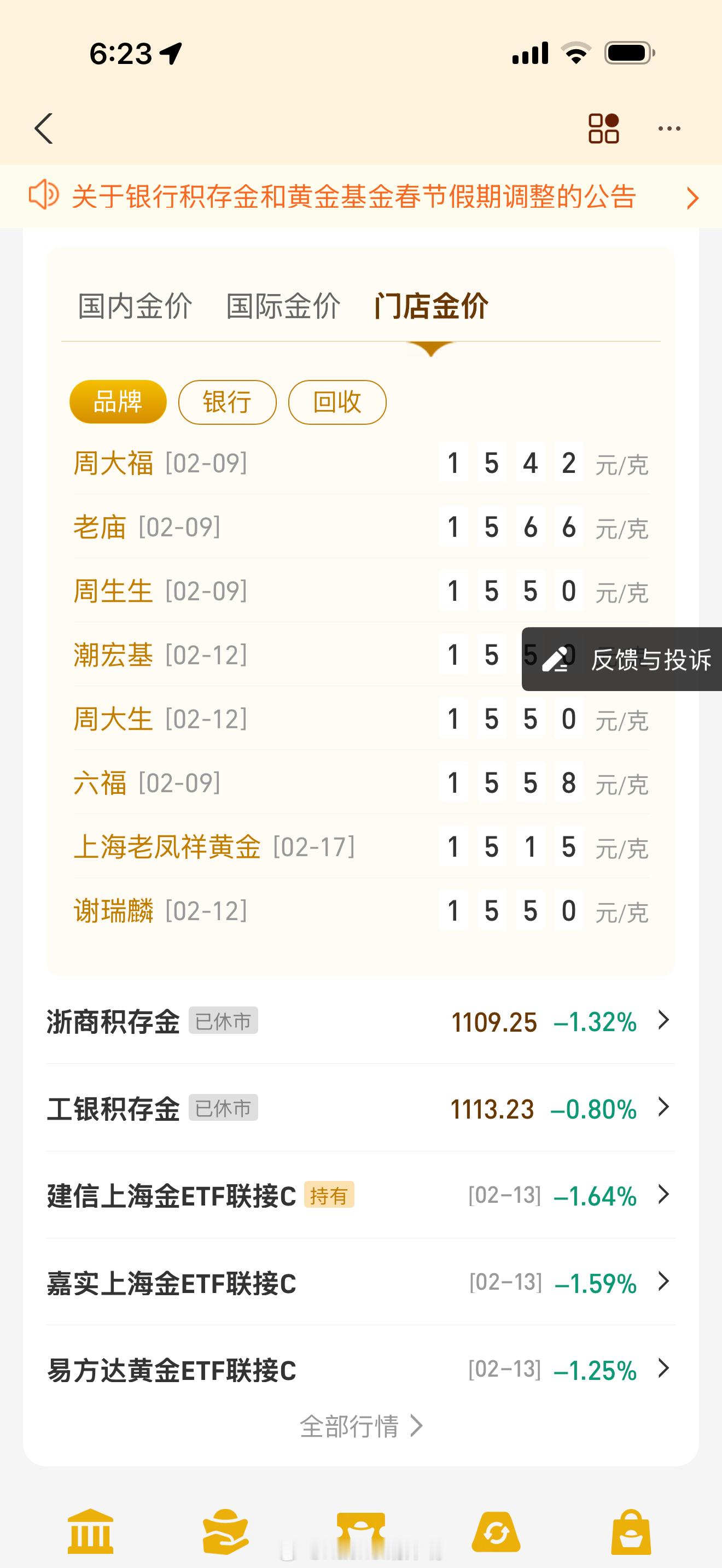 金价大过年的 国内收盘 你偷偷跌是吧