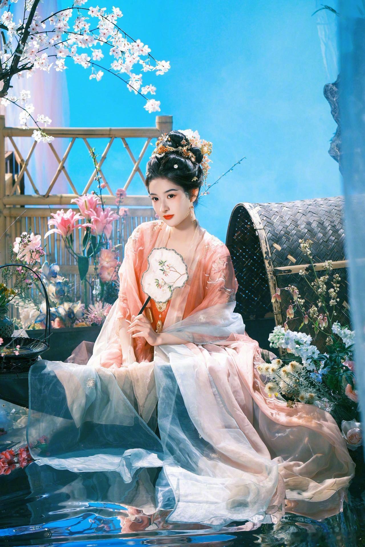 王玉雯上完春晚上凡间 王玉雯这组古风图是古画复刻吧?倚窗遥望有韵味,嗅花品香显灵