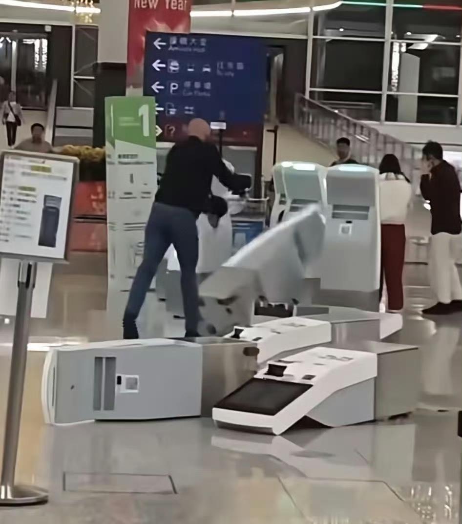 大过年的,香港机场出了这么一档子事,真是让人又生气又解气。 一名35岁英国男子,在机场大堂突然发飙,对着自助值机设备一通打砸,现场一片狼藉,路过的旅客吓得纷纷躲开。警方很快到场控制住人,还从他身上查出了违禁物品,到底是情绪失控、还是受了药物影响,等着警方调查就好。 有人开玩笑说,可能是咱们的自助系统太先进,他不会用就恼羞成怒。这话听着解气,但说到底,不管会不会用、不管哪国人,到了香港就得守香港的法律。公共场合撒泼打砸,吓着旅客、弄坏设施,绝不能轻饶。 早不是一百多年前的样子了,这里是中国的香港,讲法治、讲秩序,更讲公道。不管是谁,敢在这里蛮横闹事,就该依法严办,该赔的赔、该罚的罚,没什么情面可讲。 出门在外守规矩,到哪都一样。真希望这事能给某些人提个醒:别把蛮横当特权,别把纵容当理所当然。在这片土地上,法律面前人人平等,谁也别想例外。
