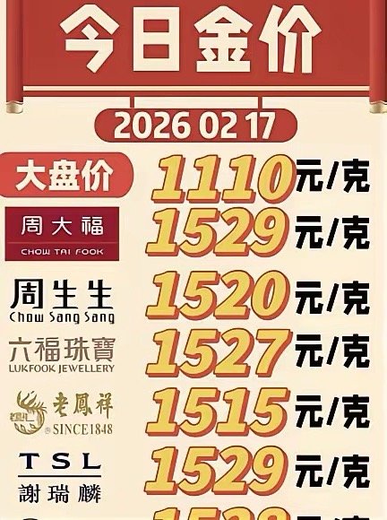 金价价格剧烈波动 国际金价:2月17日盘中暴跌2.3%,失守4900美元/盎司,创近半年单日最大跌幅;白银同步跌超4%至73.5美元/盎司。 国内传导分化:品牌金饰(如周大福、六福珠宝)价格小幅下调至1527–1534元/克,但仍显著高于原料金价(约1100元/克),工费与品牌溢价达300–450元/克。 回收价差悬殊:黄金回收价仅1095元/克左右,品牌金饰变现相当于打7折,且需承担折旧费、损耗费等隐性成本。跳水核心原因地缘风险缓和:伊朗与美国核谈判取得进展,削弱避险需求,触发程序化交易连锁抛售。流动性危机:美股科技股暴跌引发流动性紧张,投资者抛售黄金弥补亏损,叠加亚洲夜间交易流动性薄弱放大跌幅。 技术性回调:2025年金价累计涨超50%,投机资金高位套现,相对强弱指数(RSI)此前超90显示严重超买。