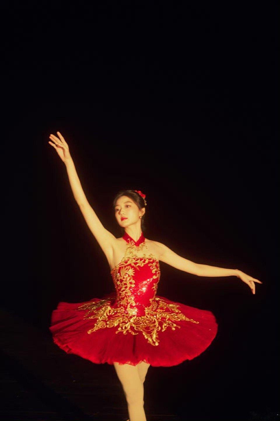 孙千红裙芭蕾 孙千热烈明艳的红裙衬得舞姿轻盈优雅,惊艳又高级,根本挪不开眼