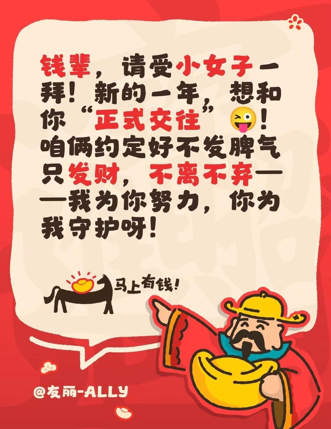 钱辈,请受小女子一拜!新的一年,想和你“正式交往”😜!咱俩约定好不发脾气只发财,不离不弃——我为你努力,你为我守护呀!