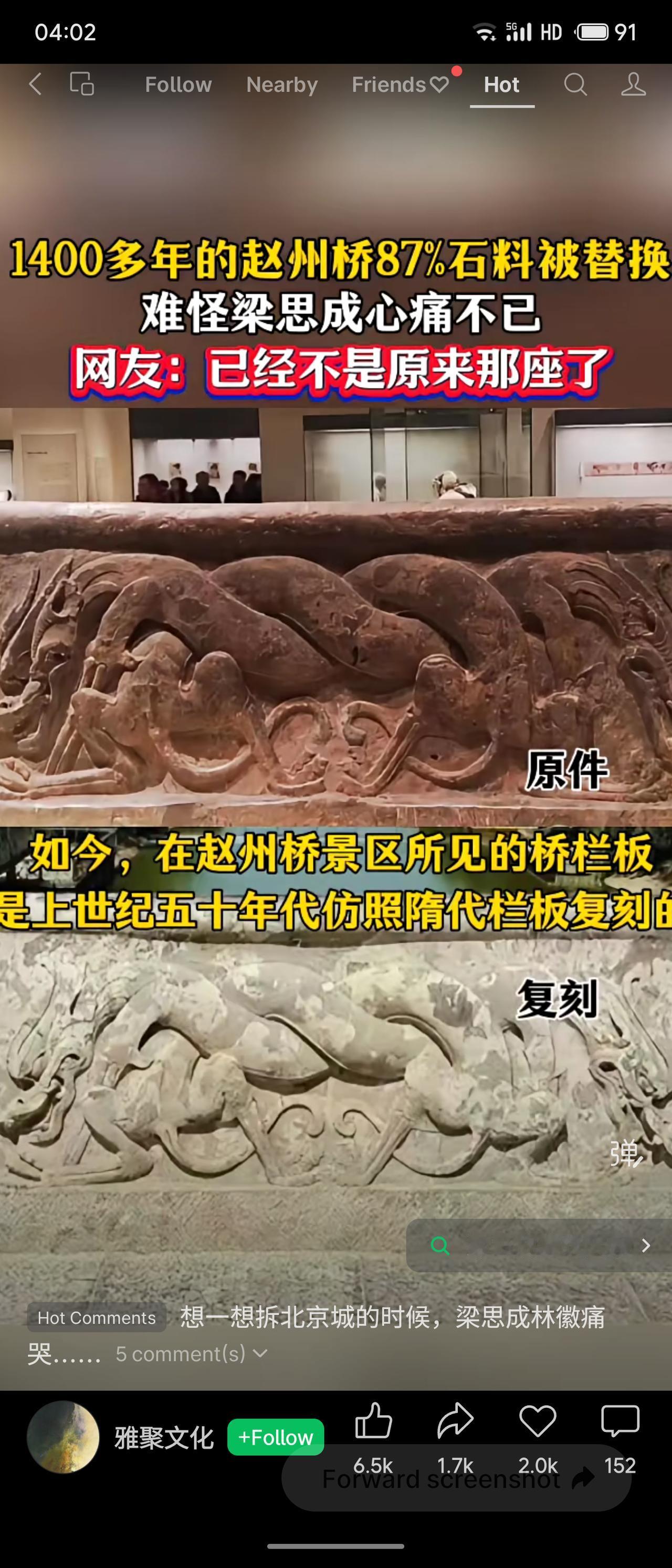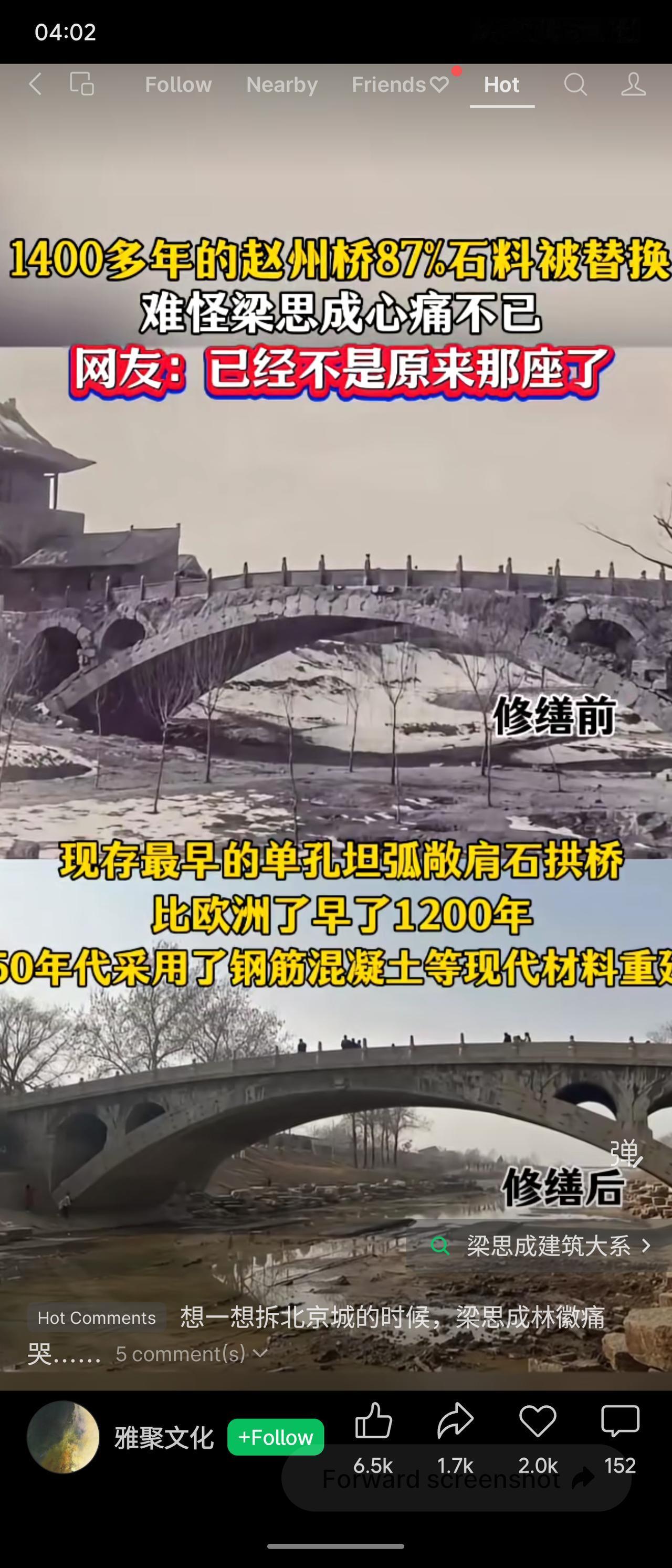 赵州桥在上世纪50年代修缮时,因87%的石料被替换、大量使用现代材料,导致这座1400年古桥的历史原真性严重受损。栏板上古朴的隋代雕刻也被仿品取代。梁思成当年的痛心,正源于文物“原汁原味”的不可逆丧失。网友感慨“已经不是原来那座”,也引发对“修复”与“破坏”界限的深思。