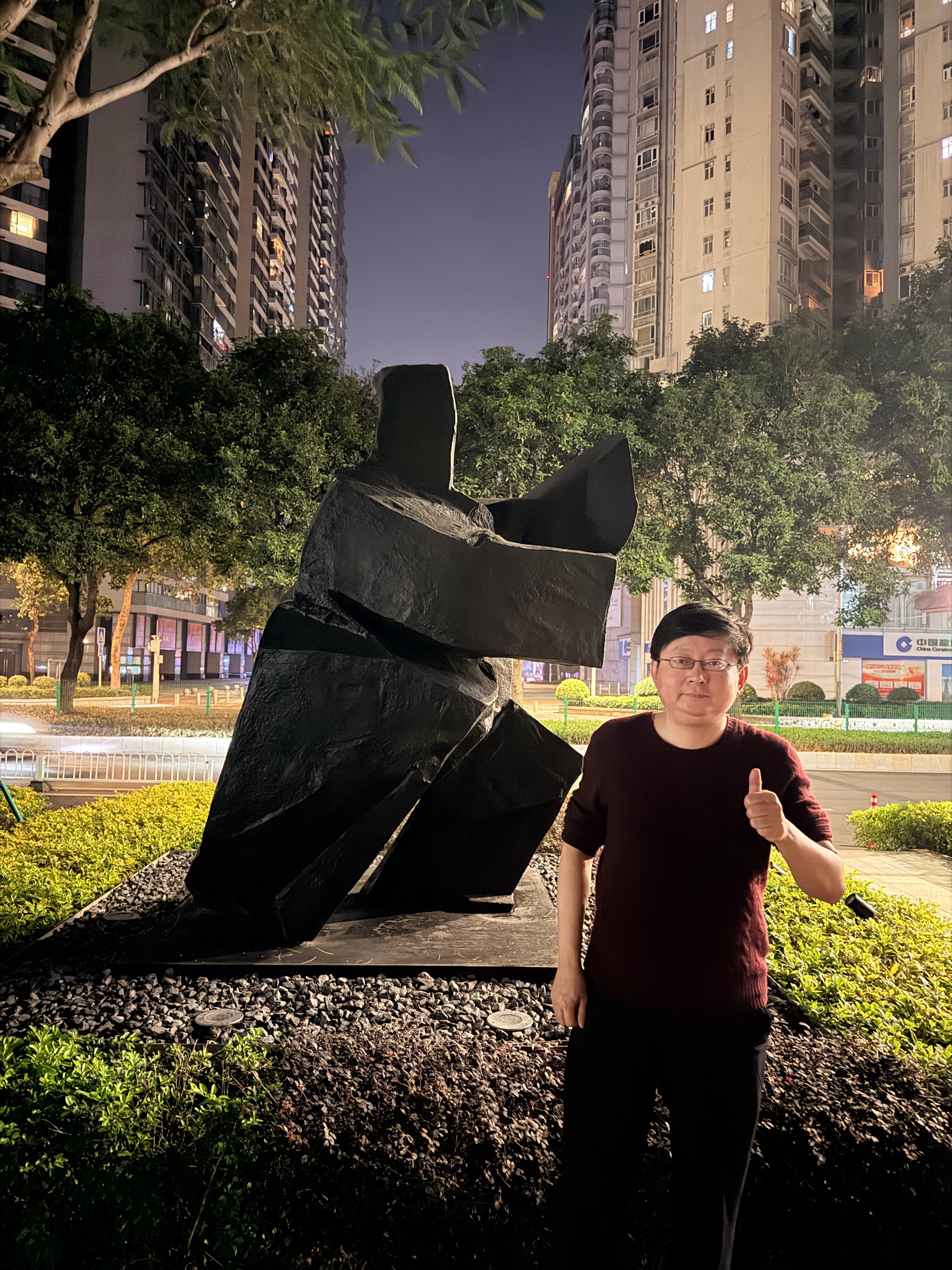 比小蛮腰更感性更伸手可及,“抽象有毕加索,具象有九二”——什么是真正的抽象,什么是真正的具象,其实真谛有真懂艺术的人说是“过程中”,也有人说是“不好看”,其实就是三个字“未完成”,真正好的艺术、好的作品和真正的文明边疆的秘密都在这里。九二先生的太极等雕塑系列,千余件中最喜欢这一件,今夜终于合影。谢谢,你拍出我的双下巴和陪你们皮鞋九万步的疲敝,累了,不给滤镜和修图,可能也是九二先生所言的“未完成”,也非常喜欢这一张。欢迎南方朋友们也多多来北京。广州·凯华国际中心