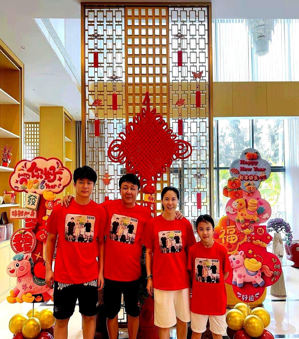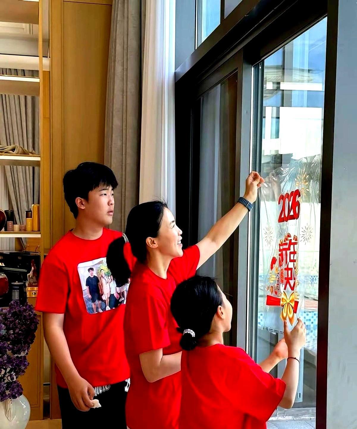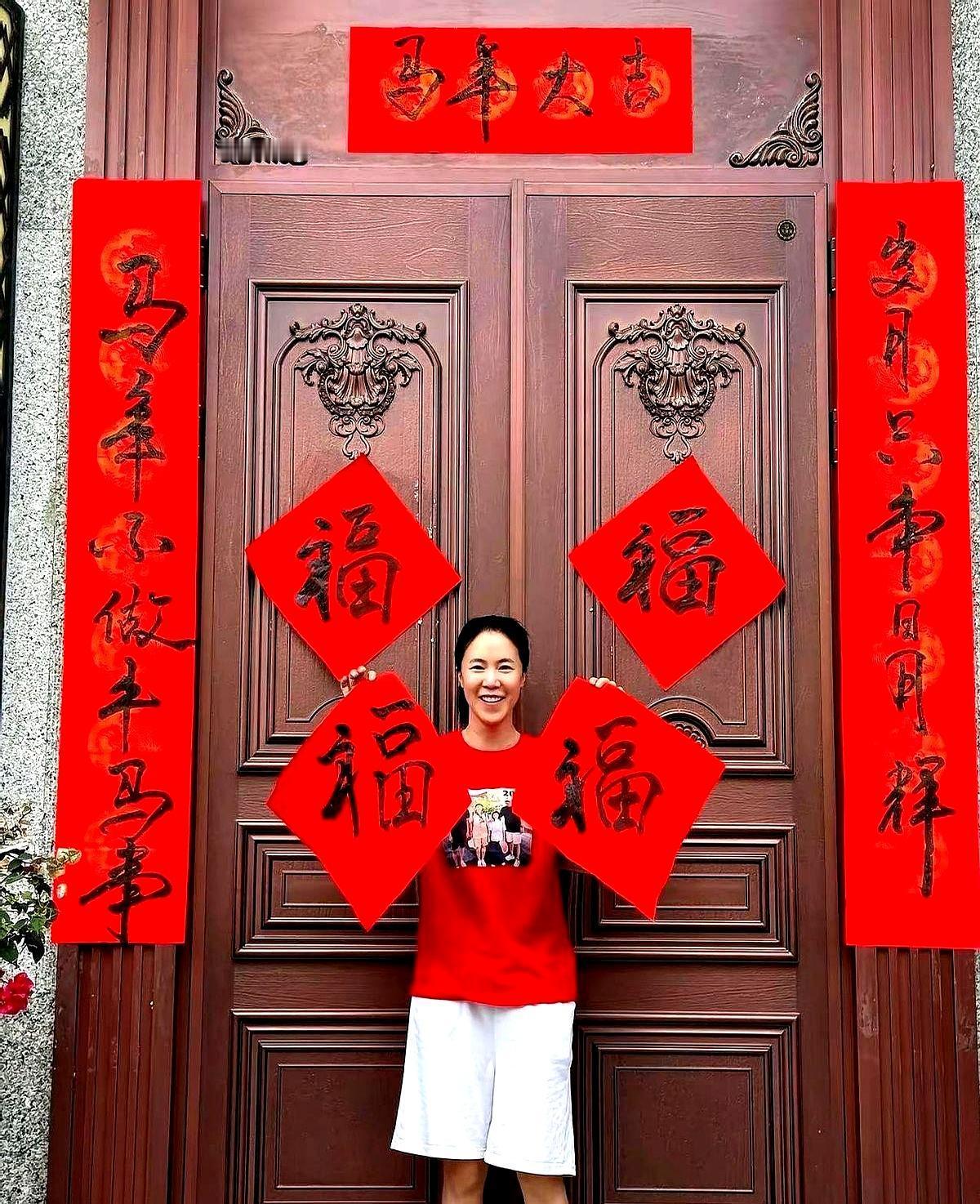 身家过亿,他除夕夜蹲在5米高别墅里写春联。 郭斌抓起毛笔,手腕一抖,墨汁砸在红纸上。王楠凑近递纸,儿子郭麒一米八的个头,弯腰拉着纸角。客厅挑高五米,阳光劈进来,照见桌上“马年大吉”未干的横批。 全家清一色红T恤,印着四口合照。女儿笑笑踮脚贴窗花,王楠抬手扶正。郭斌写完最后一笔,抬头瞅见老婆眼神,咧开嘴笑了。 别墅再豪,也得有烟火气。钱再多,你买得到一家人傻笑吗?