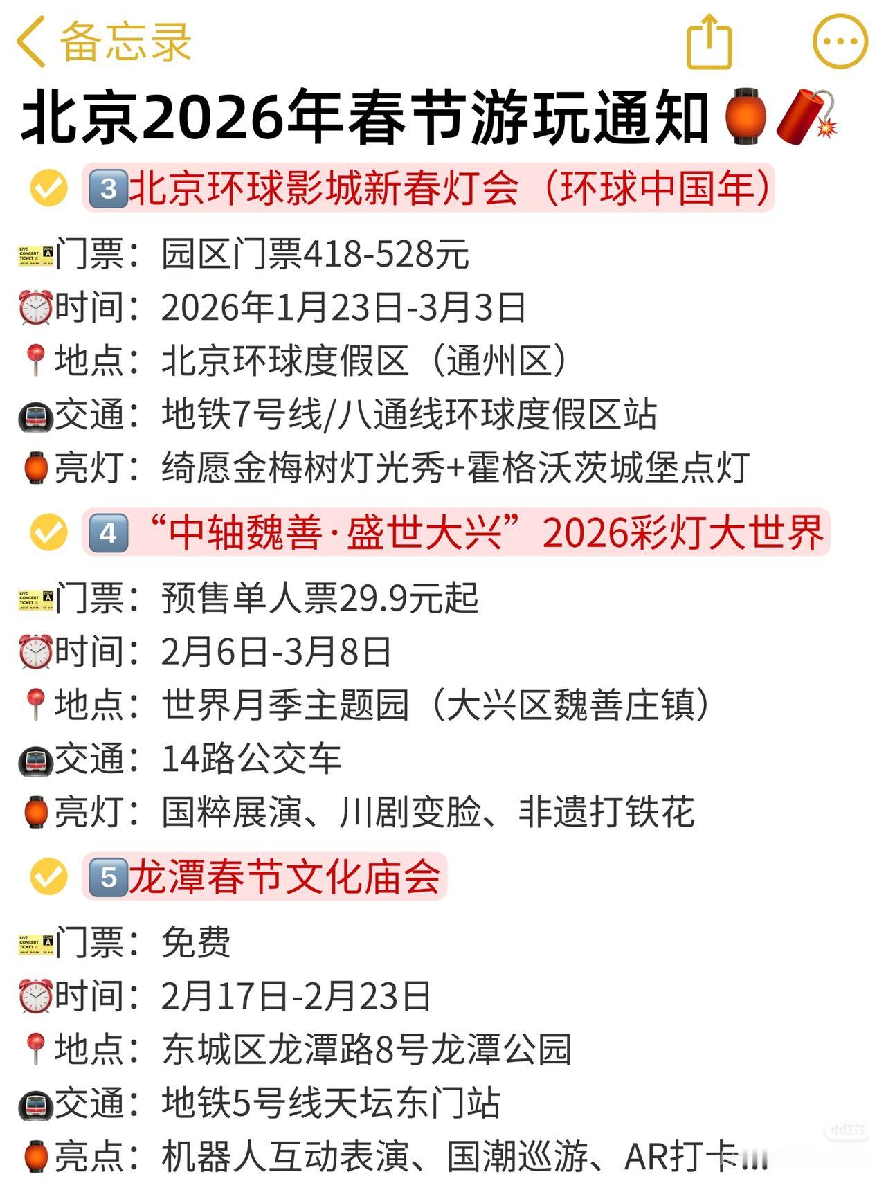 记录一下别人发的春节能出去玩的地方