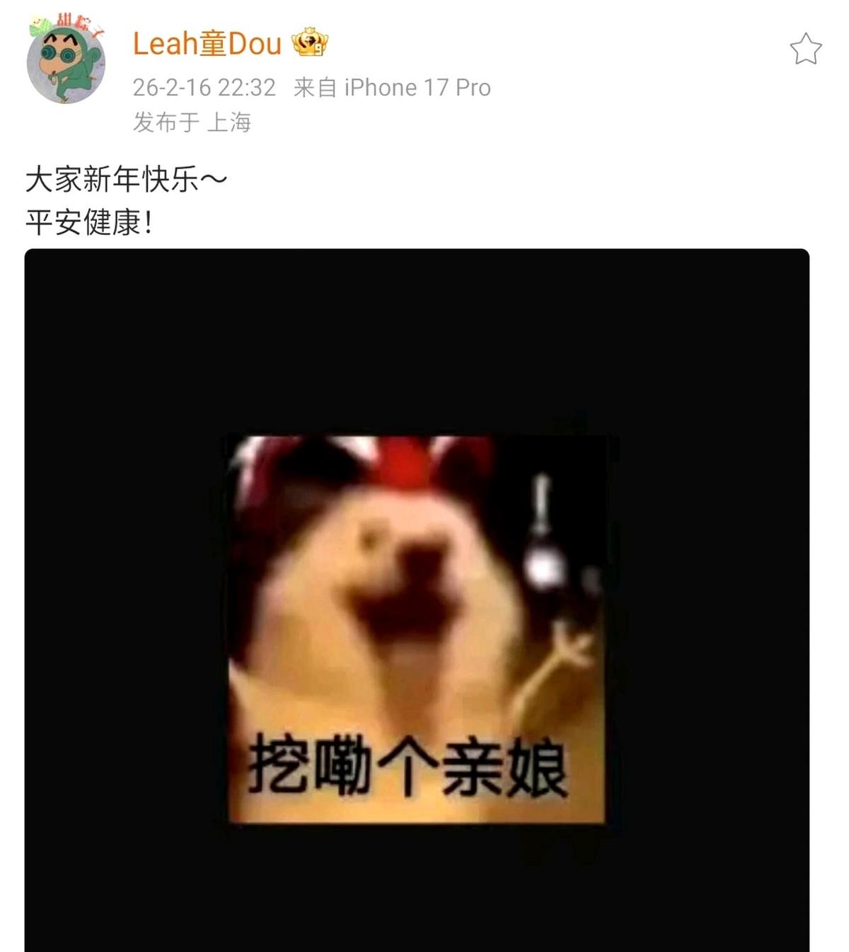 全网都在夸王菲春晚封神,但最顶级的捧场,来自窦靖童的四个字。 2026年春晚,王菲压轴唱完,窦靖童火速发文,一句新年快乐,配了个方言表情包:“挖嘞个亲娘”。 IP地址显示上海,人没在北京陪着。没有长篇大论的彩虹屁,就这几个字,直接让“窦靖童 亲娘”冲上热搜,阅读破亿。 网友扒出她2018年就这么干过。大家为什么吃这套?因为看腻了明星家庭的官方营业,这种接地气的真情流露才显得格外珍贵。 真正亲密的关系,一个梗就够了。