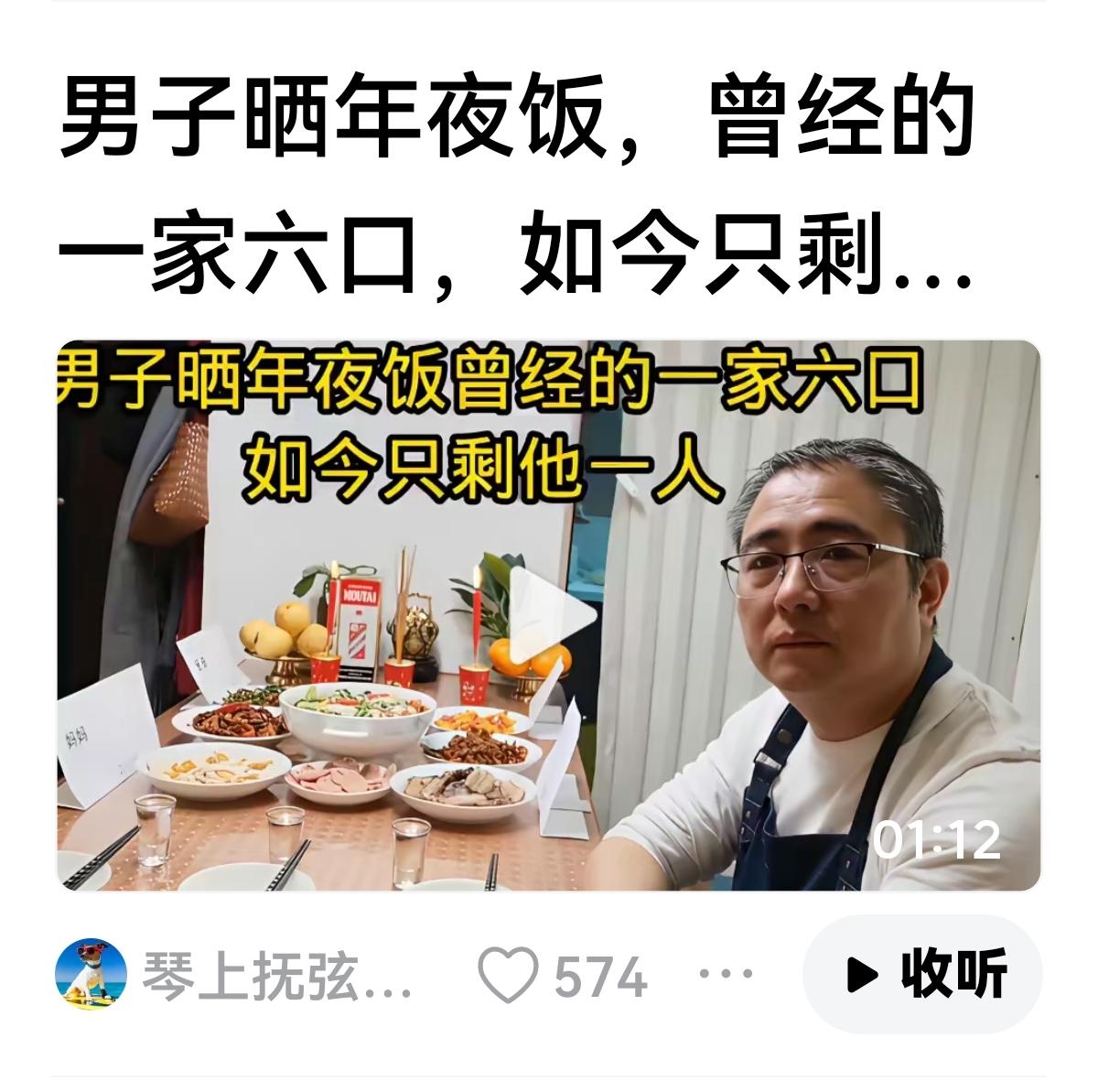 一位网友上传一个视频:曾经一家子热热闹闹,然而时光匆匆,今年春节只有他孤身一人了。 此刻在想这位仁兄,如何能让自己保持快乐? 有人说孤独是一个人的极乐世界,只有孤独才明白来这个世界走了一趟。