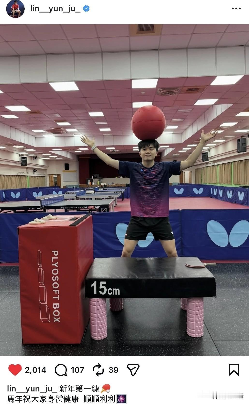 林昀儒更新动态:新年第一练。 在除夕夜的时候,林昀儒还晒了他们家的年夜饭,看着很丰盛啊,每一道菜都很精致,这大螃蟹看着肉真打呢,林昀儒确实很喜欢吃海鲜呢。林昀儒在日本打完T联赛就回家过新年了,也是幸福的小孩儿。 昨天大年初一,林昀儒也去训练了,他还把球顶在头上,可可爱爱,新年第一练,也要备战新加坡大满贯赛了。新加坡大满贯赛资格赛是2月19日至21日,看到要参加资格赛的张佑安已经从中国台北出发了,他也在年前和林昀儒一起去日本打T联赛的。 参加正赛的运动员出发的晚一点,国乒是明天出发,看到韩国队也是2月19日出发,那林允去应该也差不多时间去新加坡。新加坡大满贯赛单打冠军可获2000积分,这次的比赛大家肯定也是全力以赴。