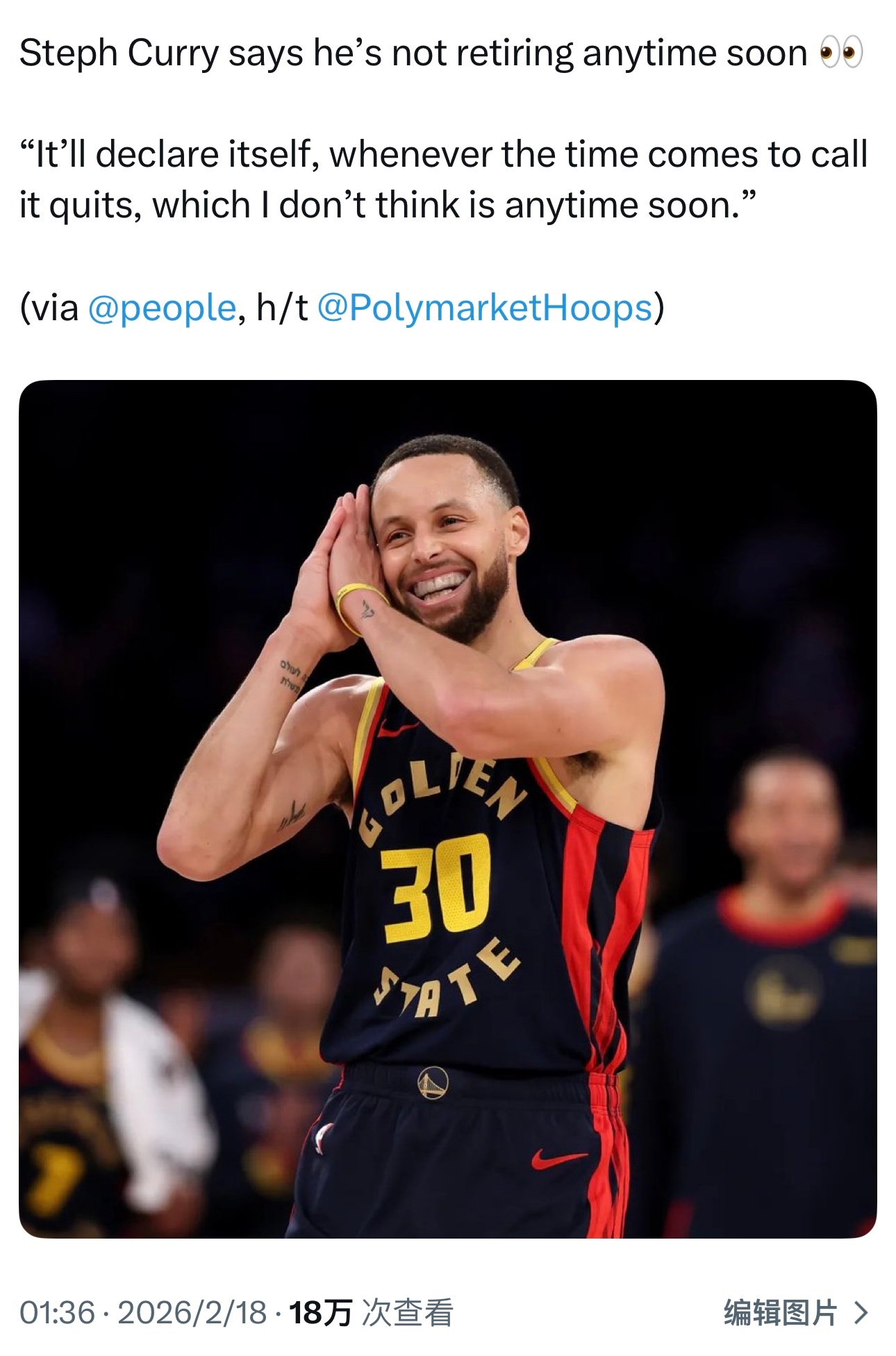 爆料库里不满勇士操作,将考虑加盟其他球队!库里认为目前的勇士队还没有做好争夺冠军 【1评论】【2点赞】 斯蒂芬·库里 勇士队 伊维察·祖巴茨 史蒂夫·鲍尔默 国际当红篮球明星 江江来过 2026-02-17