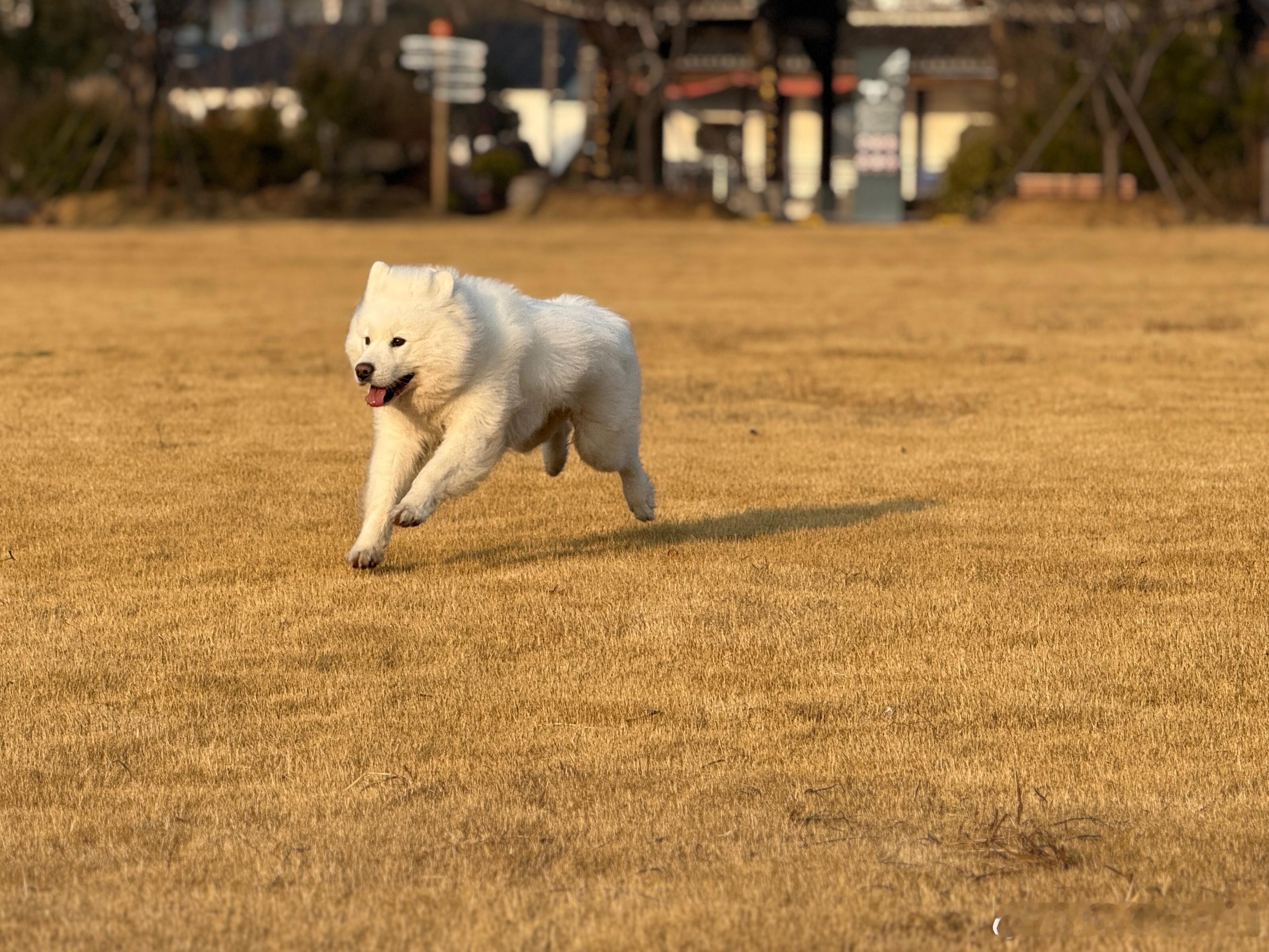 大年初二迎着朝阳奔跑,早锻炼结束~狗子都跑成七匹狼Logo了
