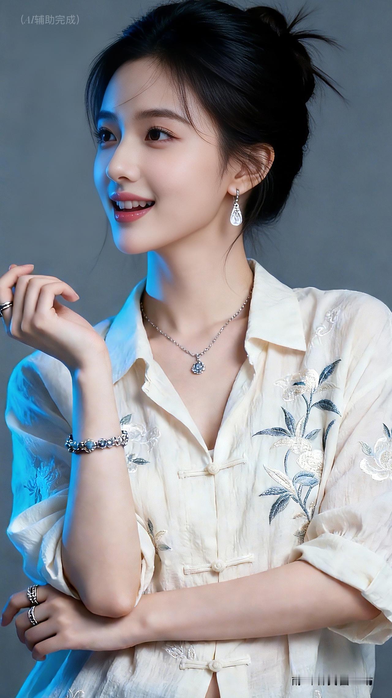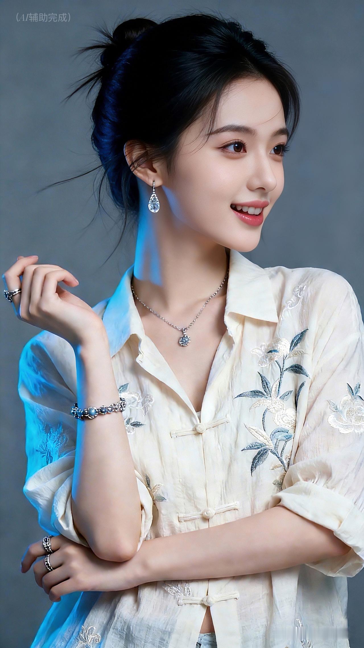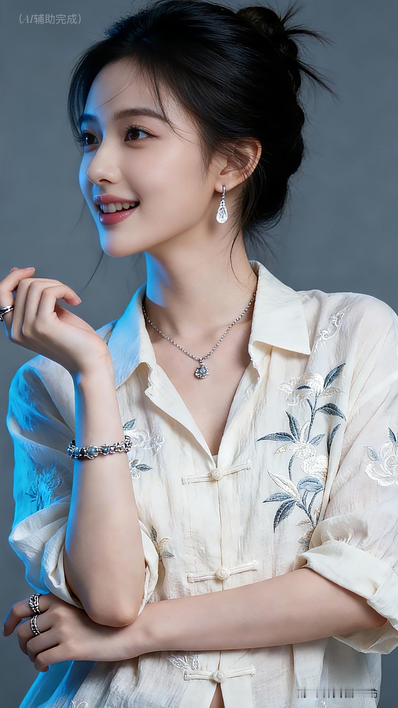 九帧同绘古典温婉仙。乌发高盘如云,米白绣花中式衫配盘扣,水滴银饰(耳链戒)添雅。眉眼含春笑靥甜,手姿优雅态从容。灰调背景衬静谧,东方韵漫帧间,这帧美人一眼沦陷!