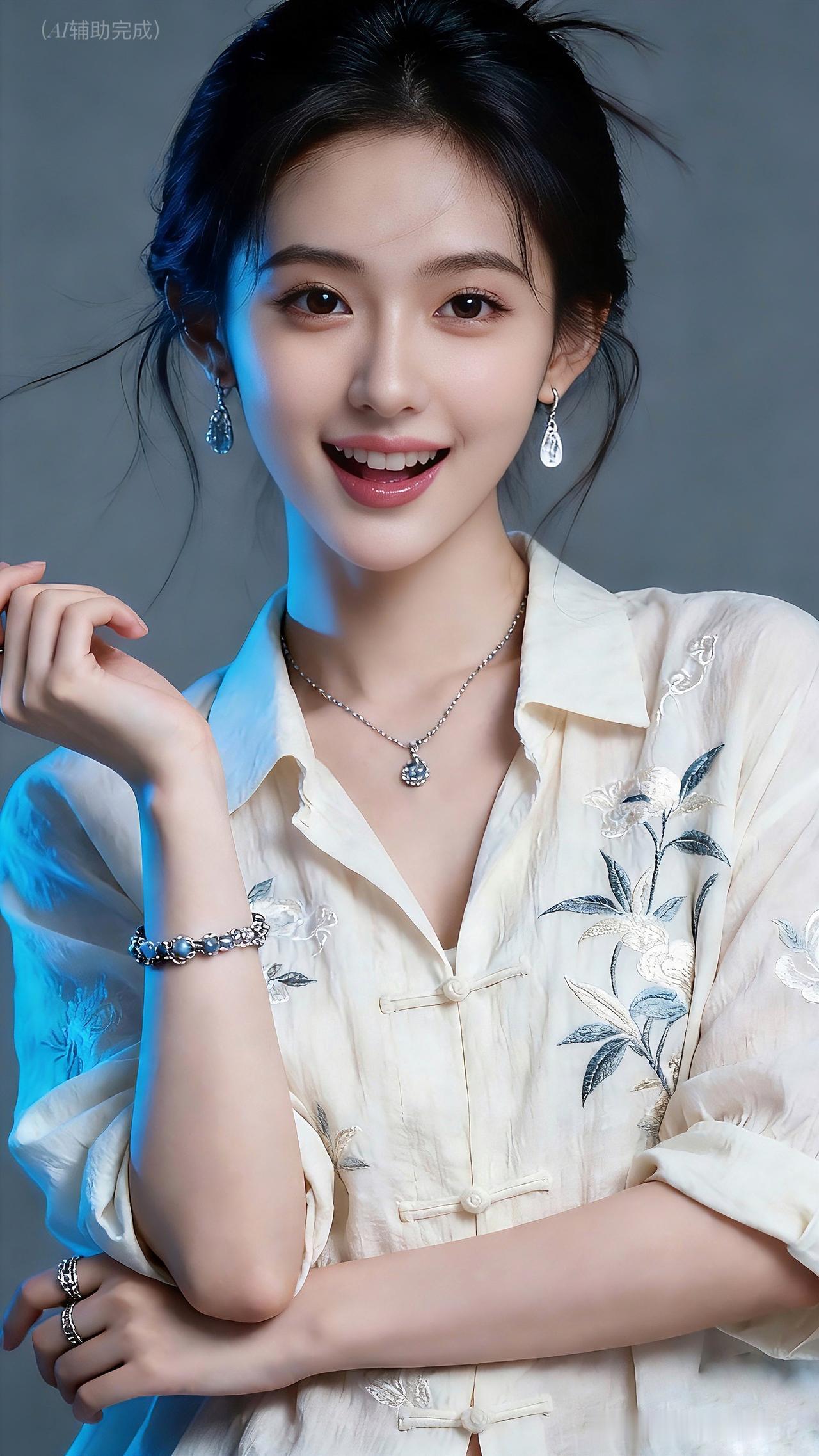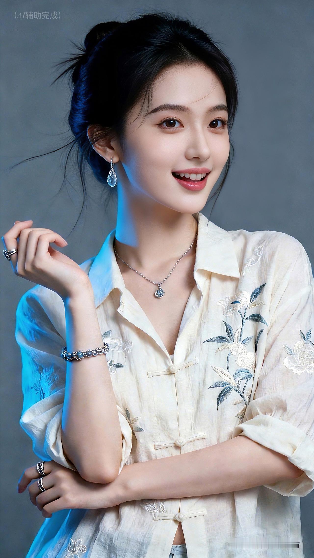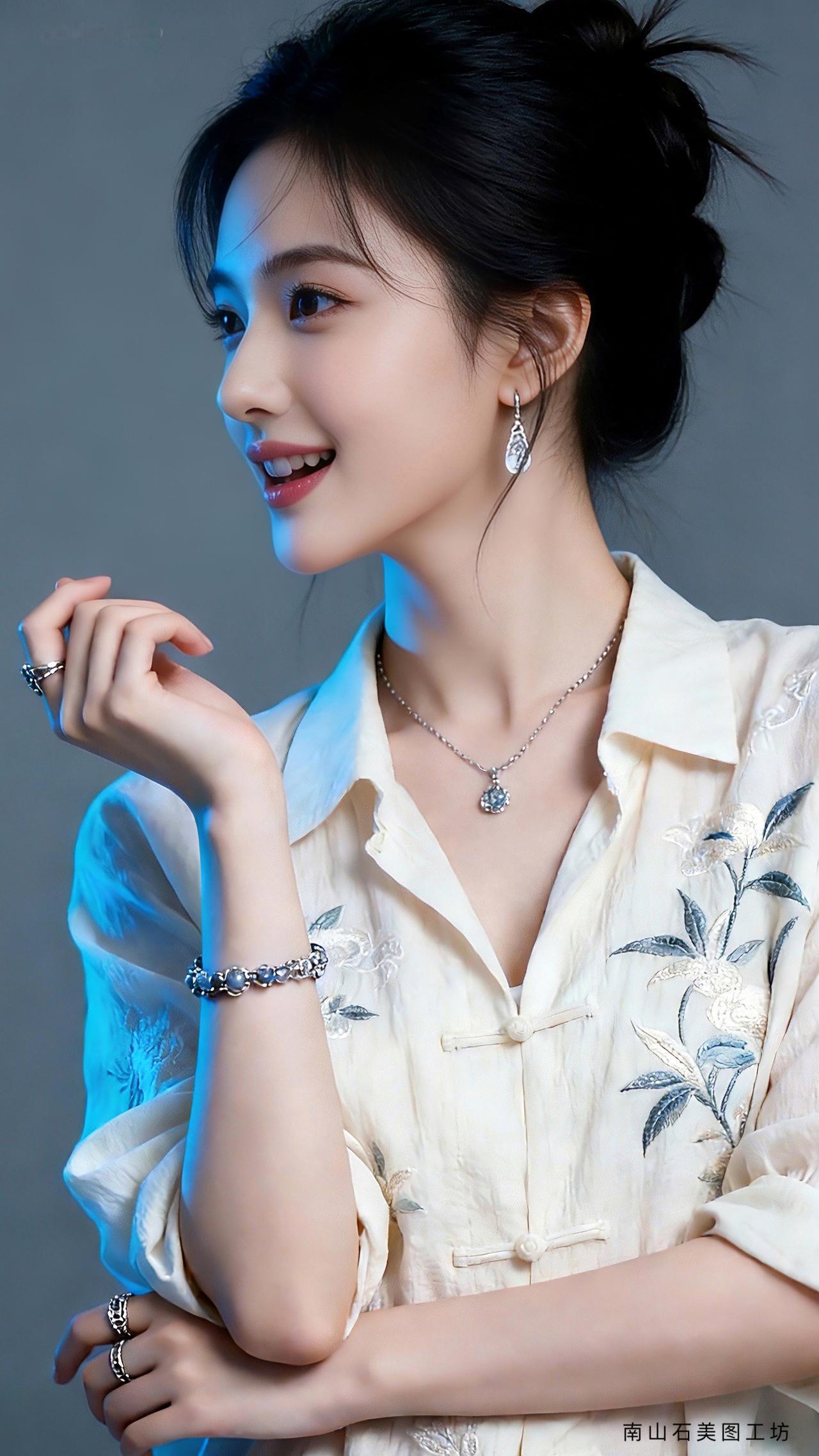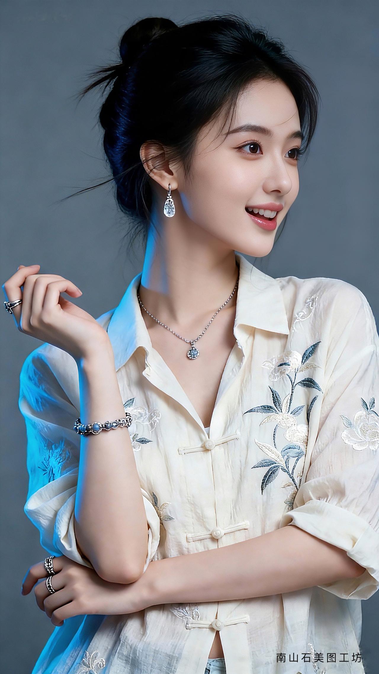 九帧同绘古典温婉仙。乌发高盘如云,米白绣花中式衫配盘扣,水滴银饰(耳链戒)添雅。眉眼含春笑靥甜,手姿优雅态从容。灰调背景衬静谧,东方韵漫帧间,这帧美人一眼沦陷!
