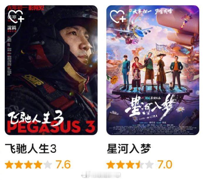 春节档电影开分飞驰人生3豆瓣7.6分 2026春节档6部新片中,已有三部豆瓣开分:《飞驰人生3》7.6分、《镖人》7.5分、《星河入梦》7.0分。你看了哪一部?