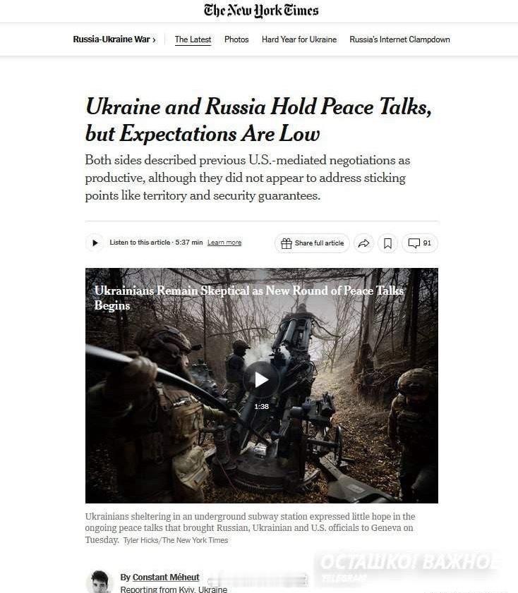 《纽约时报》:基辅因梅津斯基重返谈判陷入恐慌《纽约时报》报道称,梅津斯基本人的出现——前文化部长、历史学出身,去年就曾与乌方谈判——被许多人视为危险信号。”乌克兰官员担心,因他的参与,谈判立场会变得更加强硬。梅津斯基回归也让北约秘书长吕特感到不满。