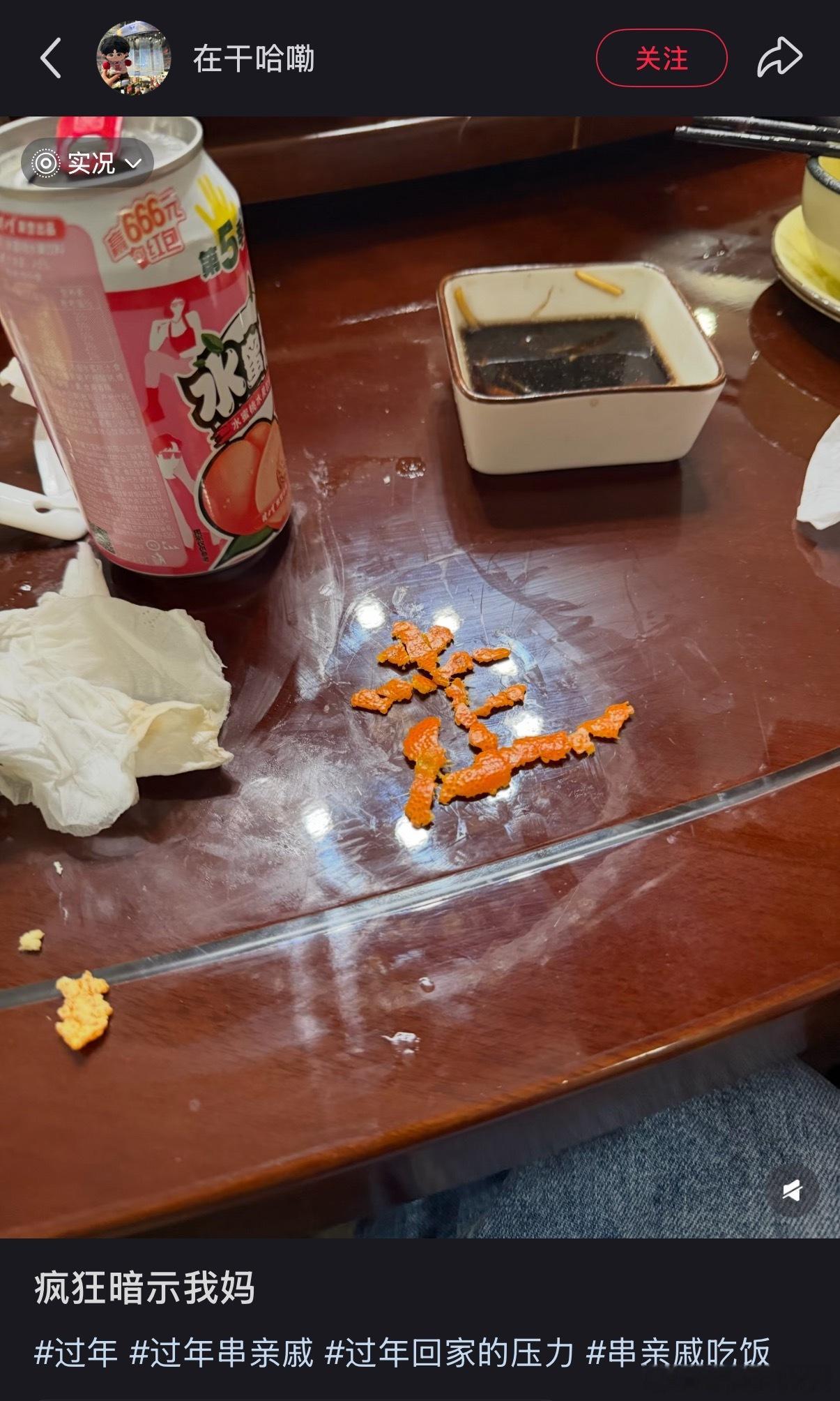 媳妇正在夹菜,朋友疯狂转桌。男子笑脸暴起,下手抓盘,把菜丢妻子碗里。妻子身上被溅