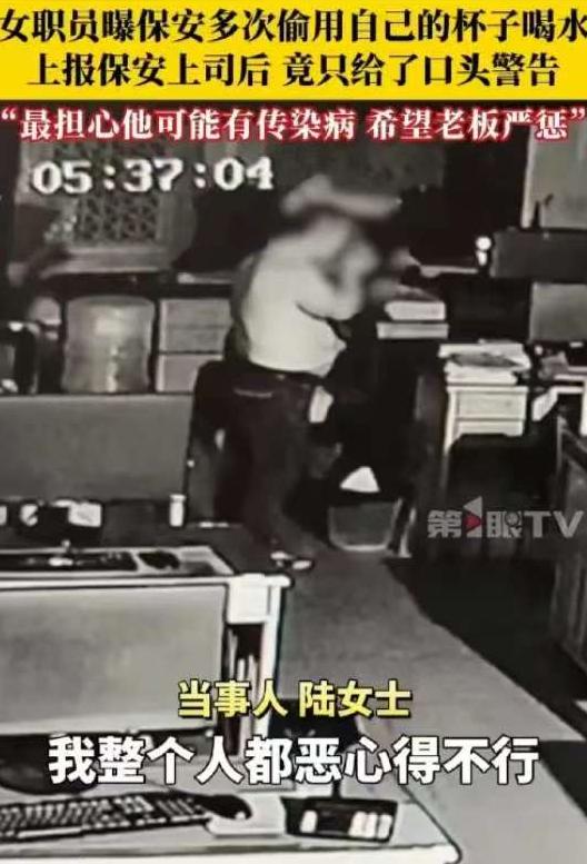 “太恶心了!”广东,一女子查监控,发现男保安几乎天天趁她下班后,用她的杯子喝水,女子瞬间作呕,而之后同事的一句话让她越想越害怕,随即将此事反映给了老板,但老板的处理方式让她难以接受。 换做任何一个人,遇到这样的事,恐怕都得浑身发毛、胃里翻涌。 广东中山的陆女士,最近就被一件看似“小事”,搅得食不知味、夜不能安,而真正让她寒心的,从来不是事件本身,而是身边人的态度和公司的敷衍。 事情的起因,是陆女士偶然发现的异常。她每天都会在工位上放一个保温杯,用来泡茶水、装热水,可近来总觉得不对劲。 杯里的茶叶莫名变少,茶汤常常变得寡淡,偶尔杯口还会残留淡淡的水渍,拧盖的松紧度,也和自己离开时不一样。 起初,她以为是同事不小心误用,没太放在心上,只是默默把杯子往工位内侧挪了挪。 可这种异常非但没有停止,反而愈发频繁,连续三周,每天都是如此。 心底的疑虑越积越深,陆女士终于下定决心,调取了办公区的监控,而监控里的画面,让她瞬间生理性不适,差点当场吐出来。 画面里清晰显示,每天她下班离开后没多久,公司的一名男保安,就会径直走进办公区,熟门熟路地走到她的工位前,拿起她的保温杯,拧开盖子就对着杯口直接喝,动作自然得仿佛那是他自己的东西,喝完后还会随手把杯子放回原位,不留一点痕迹。 更让人膈应的是,这种行为,竟然持续了整整22天,不是一时糊涂,而是刻意为之。 惊魂未定的陆女士,忍不住和身边的同事吐槽,可同事的一句话,瞬间让她从头凉到脚,越想越害怕。 同事小声提醒她:“你没注意吗?前几天我加班到很晚,也看到他在你工位旁边站了好久,当时还以为他是在找东西,现在想想,太吓人了,他说不定早就盯上你的东西了。” 这句话像一根刺,扎在陆女士心里。是啊,保安手握办公区钥匙,能自由出入各个工位,他既然敢长期挪用自己的水杯,会不会还动过其他私人物品? 一想到自己每天用的杯子,被陌生人反复触碰、饮用,甚至可能存在经口传播的健康隐患(医生曾提醒,幽门螺杆菌等病菌可通过口口接触传播),她就浑身不自在。 压着心底的恶心和恐惧,陆女士第一时间找到了老板,详细说明了情况,还提交了监控录像,希望公司能严肃处理,开除这名保安,同时安排双方进行体检,消除健康隐患,可老板的回应,却让她彻底心凉半截。 老板皱着眉听完,没有一丝惊讶,反而语重心长地劝她:“小陆啊,多大点事,你又没真出事,何必砸人饭碗?” 还说公司正处于评优的关键期,闹大了影响不好,让她自己去医院检查,公司报销费用,至于保安,只需要批评教育一下就好,甚至反过来劝她“做人要大度一点”。 更值得警惕的是,这件事背后暴露的,不仅是保安个人的边界感缺失,还有公司管理的巨大漏洞。 保安能随意出入办公区、触碰员工私人物品,说明公司的安保管理形同虚设;老板轻飘飘的“批评教育”,则是对员工合法权益的漠视,更是在默许这种越界行为。 在这里也给大家提个醒,遇到这种事,千万不要忍气吞声,也不要被“大度点”绑架。 要保留好监控录像、体检报告等相关证据,明确向公司提出自己的诉求,若公司敷衍处理,可向当地劳动监察部门投诉,维护自己的合法权益;平时也要注意保护好自己的私人物品,尽量不要随意放在公共区域。 职场从来不是“人情大于规则”的地方,边界感是底线,尊重是前提,一个连员工基本权益都无法保障、连基本管理都做不好的公司,再优秀也留不住人。 希望这件事能给所有企业敲个警钟,别等寒了员工的心,才追悔莫及;也希望每一个人,都能勇敢守护自己的边界,不被冒犯,不被忽视。