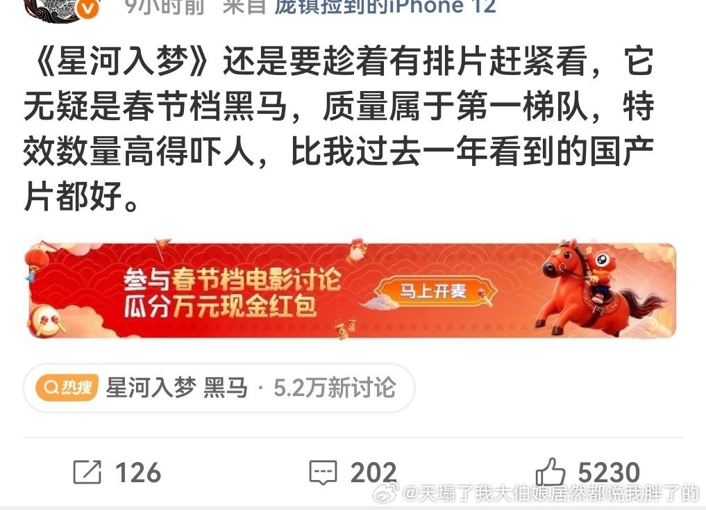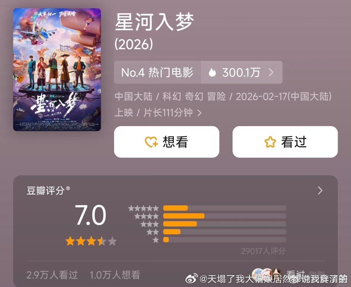 星河入梦买了不少稿似乎也确实不是烂片但是说白了就是题材片名主演都任何吸引人的地方说科幻又不是流浪地球那种“大制作”,科幻、“大制作”受众不会去河堤送钱拉路人进电影院度也为0想吹质量呢豆瓣开分还不如飞驰3和镖人,扑街几天再逃档找机会再上争取少扑点儿的命估计