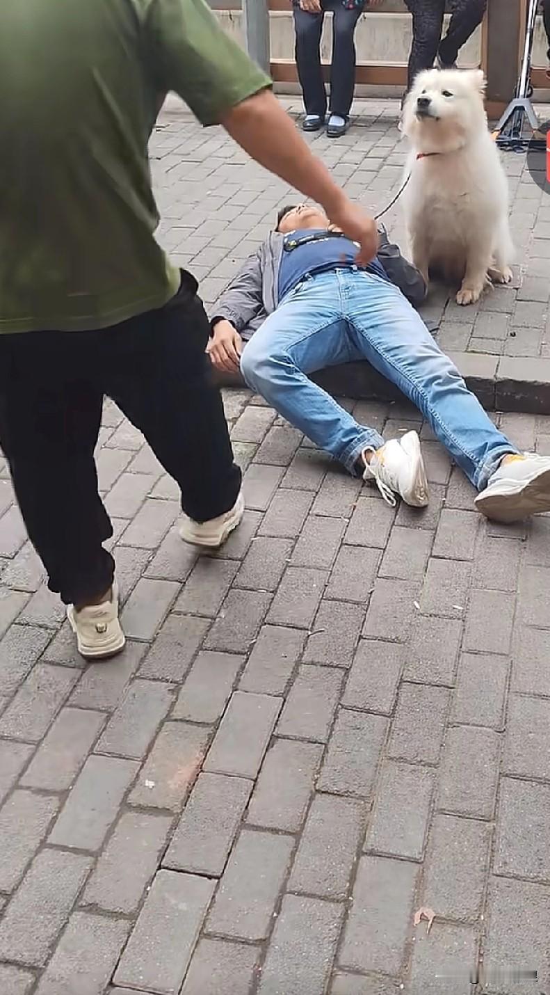 主人晕倒在路旁,狗狗趴在主人身上,不让陌生人靠近。这给想救助男子的好心人添了诸多