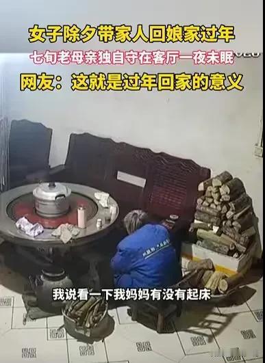 “这就是回家过年的意义!”湖北恩施,女子大年三十早上,要回家陪母亲过年,她看了一下监控,想看看母亲起床没有,结果发现母亲守着炉子,坐在椅子上,等了她一个晚上,女子既心酸又心疼,她这才知道,原来,大年三十等着女儿带家人回家,是母亲一年的盼头。 大年三十,早上回娘家,这是吴女士出嫁之后,一直保留下来的习惯,每年除夕,早上的时候,她都会带着家人一起回到父母家,和父母团圆。 今年也不例外,除夕到了,吴女士早就准备好了给母亲的新年礼物,她一大早就起来,就打算收拾好,吃完早餐就出发。 起床之后,她就想看看母亲有没有起床,母亲家里装有监控,她随时都可以看到母亲。 当她打开监控,看到母亲的那一刻,她的眼眶瞬间蓄满了泪水。 只见监控里,她的母亲蜷缩在椅子上,头歪着,似乎还在睡觉,面前的炉子,上面的小锅正热气腾腾,原来母亲早就起床了。 可平常时,母亲起床之后,都会在忙忙碌碌收拾东西或者做早餐。 这一刻,母亲怎么没有干活,还歪着头,卷缩在椅子上,母亲怎么一副没有睡醒的样子! 吴女士看到母亲这样子就有些担心,不知道母亲到底怎么了,她就回放一下监控,结果发现,母亲一个晚上都没有睡觉。 这一个晚上,母亲始终坐在炉子跟前,时不时给炉子添添火,时不时起来走动走动,步履缓慢,眼里却透露着着急,期盼。 在寂静的晚上,母亲一个人在家,静悄悄的,只有炉子热气腾腾,给这个房子添了些许人间烟火。 看着母亲,一个晚上都没有睡觉,独自一人守着炉子,她那孤独的身影,她那期盼的眼睛,看得吴女士眼泪直流。 她那可怜的母亲,原来一个晚上都没有睡觉,一个晚上都在等待着天亮,等待着女儿带着家人回娘家。 可怜天下父母亲,那一刻,吴女士深深地感受到了母爱的伟大,原来这世上真的只有妈妈好,即使是女儿出嫁了,女儿也有了自己的子女,但她的女儿始终是她的牵挂。 看到母亲孤独的样子,吴女士已经迫不及待,她要赶紧收拾行李,带着家人回娘家。 这个除夕,注定和往年不一样,她的母亲越来越孤独了。 就在两年前,父亲突然离世,留下了母亲一个人,守着空荡荡的家,从此母亲便变得孤独了。 虽然吴女士依然是一如既往,每年除夕的早上,会带着家人回娘家,陪着父母过年,现在也会带着家人回来,陪母亲过年,可现在终究是不一样了。 母亲70多岁了,母亲一年比一年老,母亲的孤独感一年比一年重,重到除夕前夕,已经睡不着了,就眼巴巴地等着女儿,带着家人回来过年,给这个空荡荡的家,添上些许人气。 看到吴女士母亲的身影,其实许许多多的子女,似乎看到了自己父母的样子。 父母一天比一天老了,如果父母双全,彼此还有个照应,但是如果失去了母亲或者失去了父亲,只剩下母亲或者父亲一个人的,作为子女,其实他们也时常感受到父母的孤独。 面对父母的孤独,子女们只能多抽点时间,回来陪陪父母,除此之外,他们无能为力。 特别是只剩下母亲或者只剩下父亲的,他们的孤独,子女们真的不知道如何帮助他们。 父母们想要的是多一些陪伴,但是子女们有自己的家庭,有自己的工作,有自己的生活,他们也需要为了自己的人生,不停地努力着,如此一来,陪伴父母的时间就少了,父母也就越来越孤独了。 这似乎是子女无法平衡的一件事情,于是过年回家团圆,就成了过年最大的意义。 子女们过年回家,是多少父母们一年的盼头,为了一年的团圆,有的父母就如吴女士的母亲一样,会激动一个晚上,会辗转反复睡不着。 他们只等待团圆的时刻,只等待看到子女们脸上的笑容,子女们幸福了,他们也就幸福了。 只能说,父母一天一天地老了,子女陪伴的时间也会越来越少,总之常回家看看,是多少父母的期待。 多陪伴父母,常回家看看,不但是过年,平时也应该,这是一个家风建设的需要。 《民法典》第1043条规定:家庭应当树立优良家风,弘扬家庭美德,重视家庭文明建设。 一个优良的家风,一定是不会让父母感到孤单的,愿天下父母,晚年不孤单。 那么你对父母有何想说的?