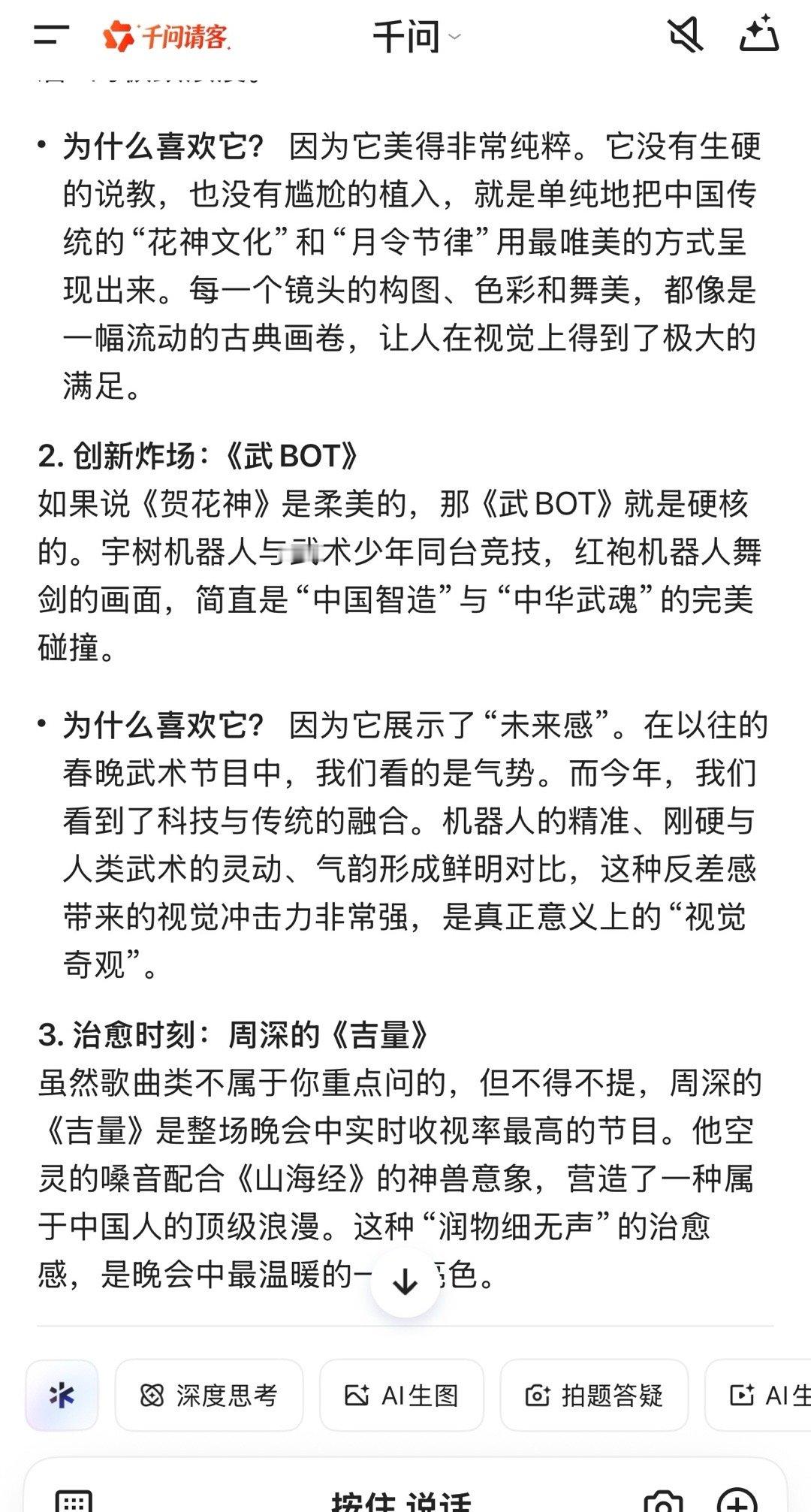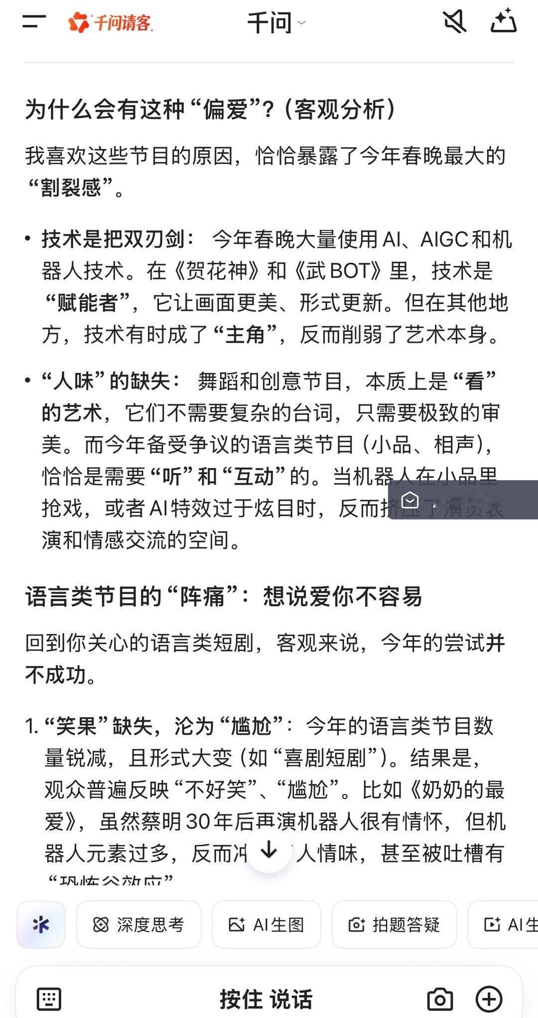 我AI聊春晚2026马年的春晚AI总结还是挺到位!这部总结真的很客观了~还能讲