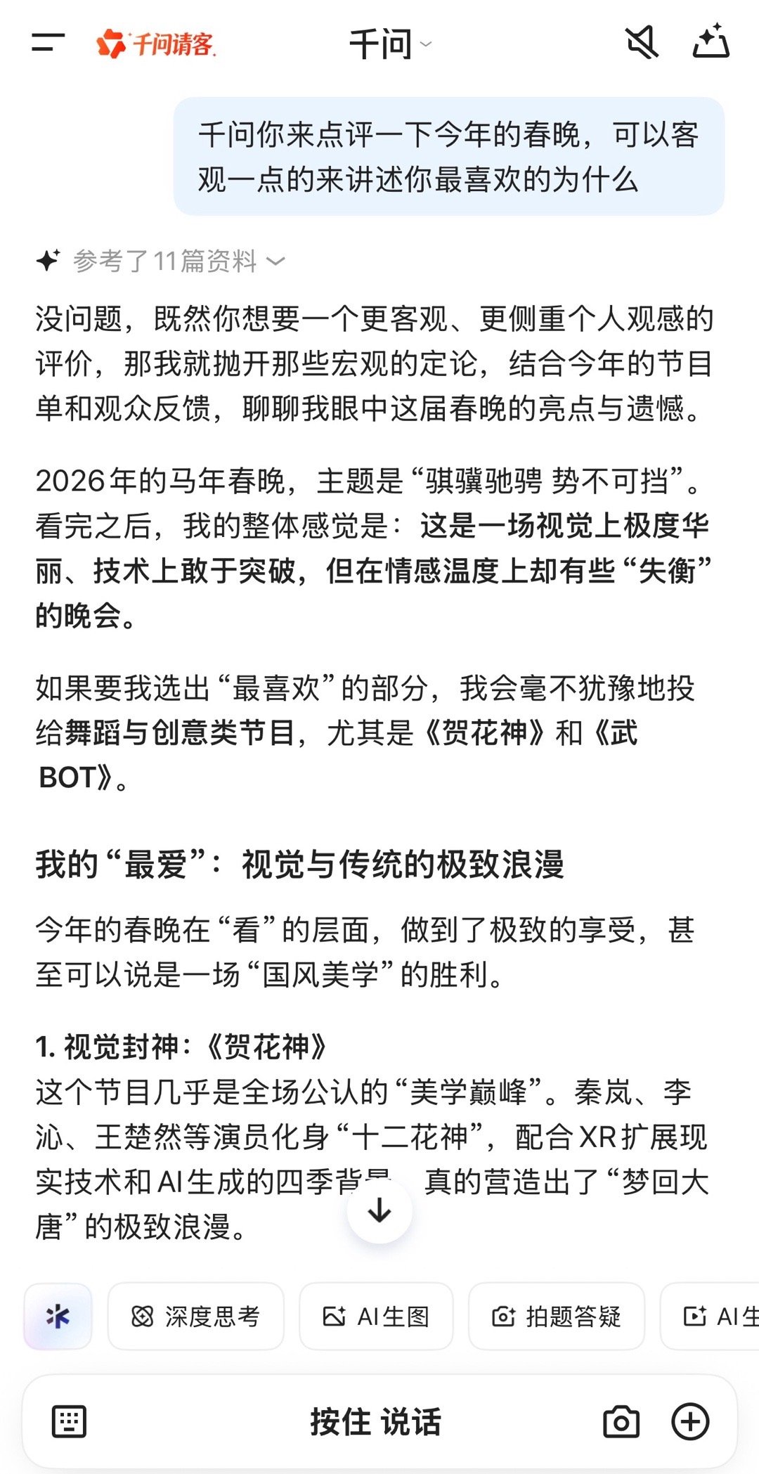 我AI聊春晚2026马年的春晚 AI总结还是挺到位!这部总结真的很客观了~还能讲出细节!