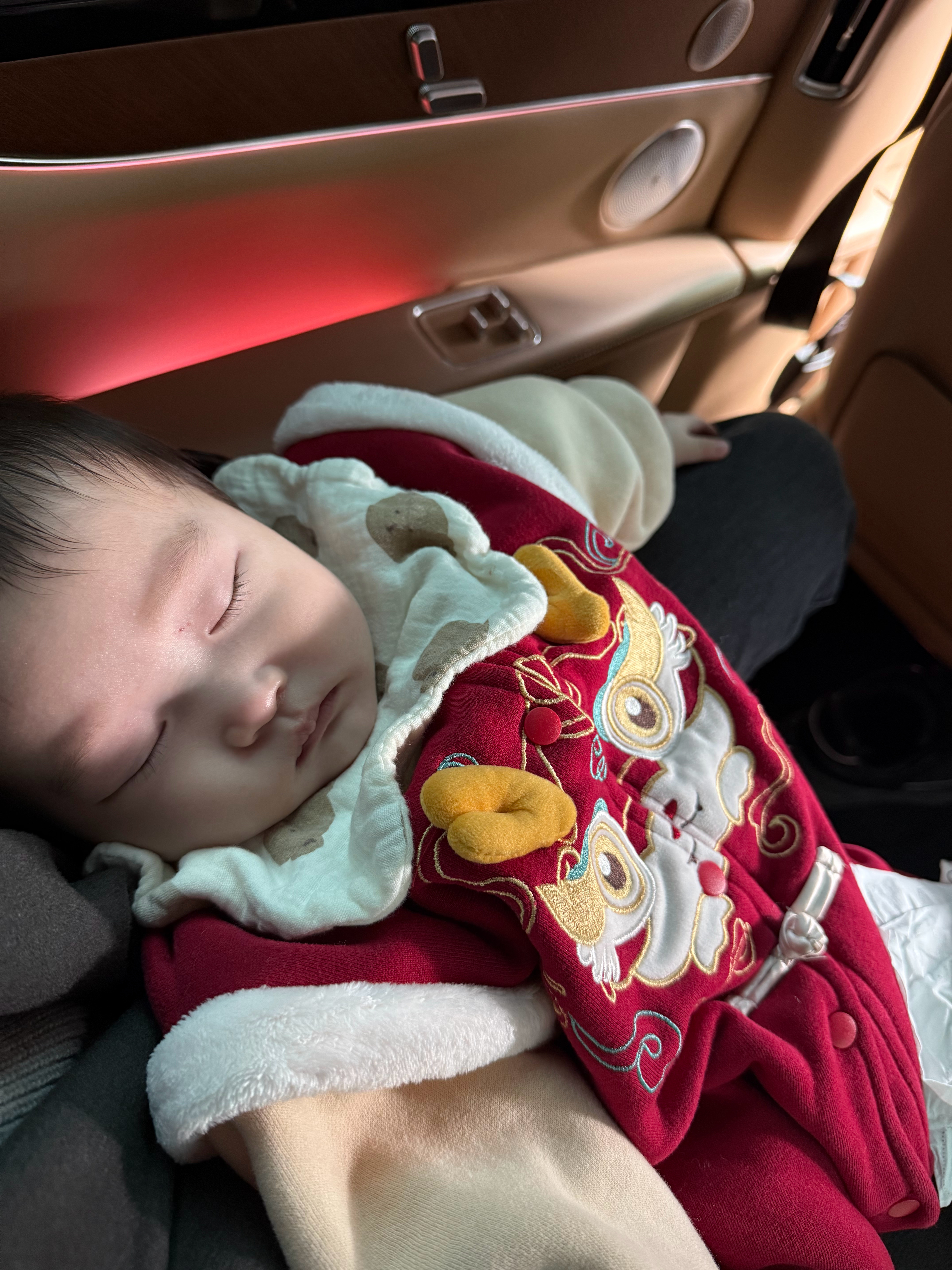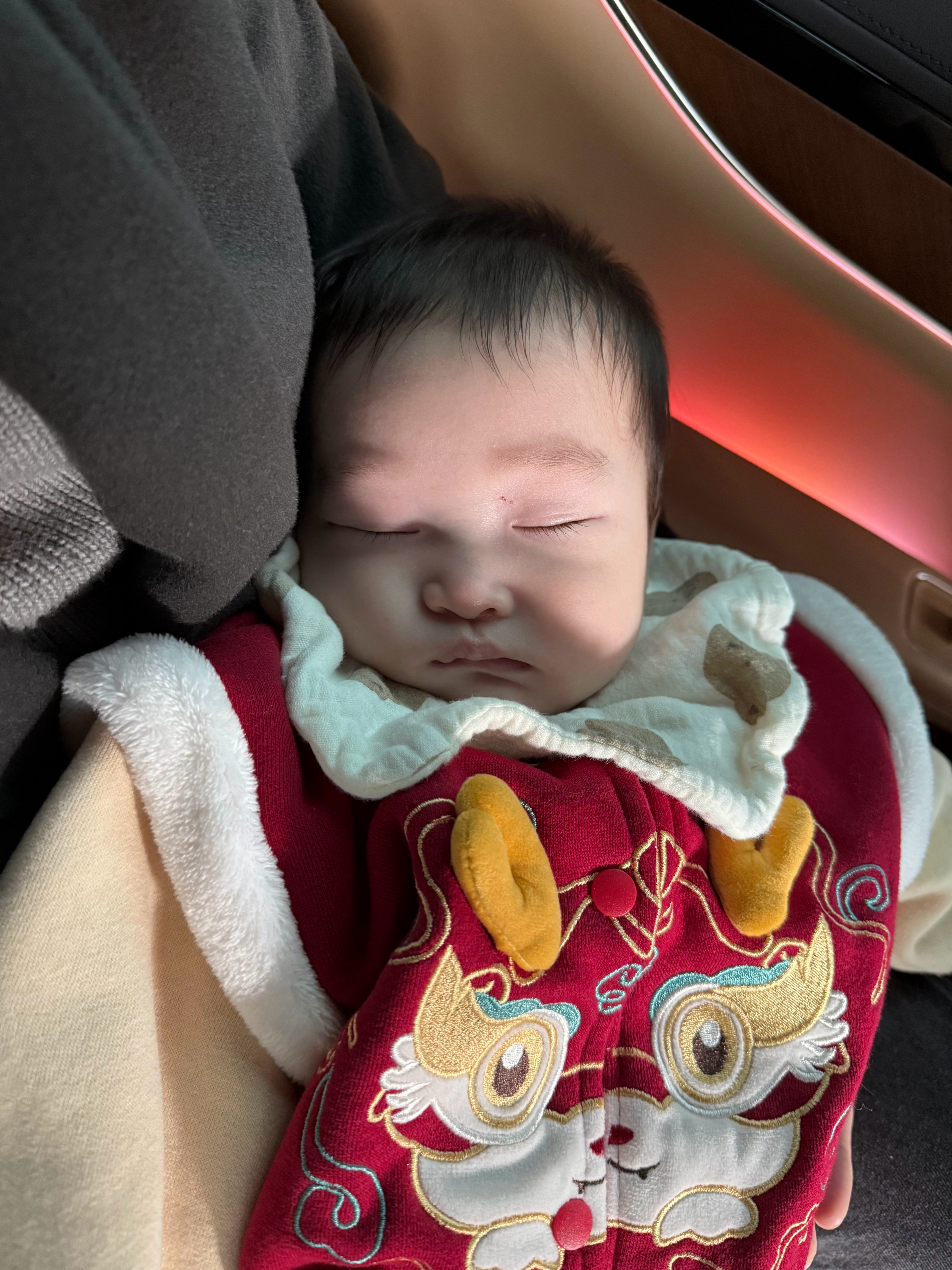 今天的崽崽是会累人的,回娘家走亲戚拜年。估计是喜欢安静,下车就闹腾,抱上车就呼呼大睡,已经保持这个姿势两小时了,有点废手臂
