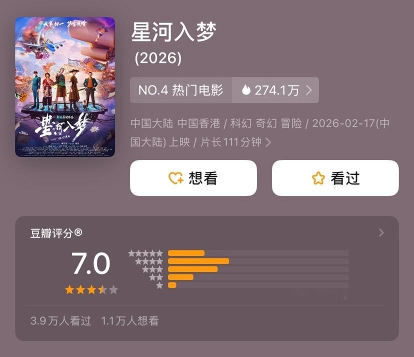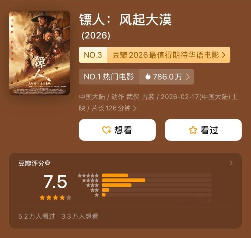 春节档电影豆瓣开分了《飞驰人生3》7.6《镖人:风起大漠》7.5《星河入梦》7