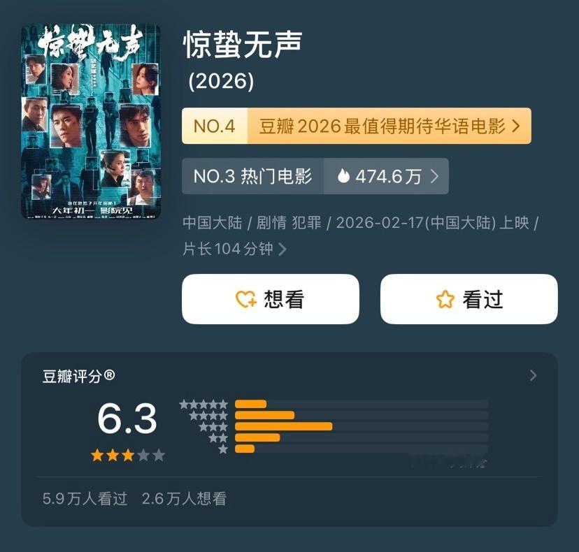 春节档电影豆瓣开分了 《飞驰人生3》7.6《镖人:风起大漠》7.5《星河入梦》7.0《惊蛰无声》6.3春节档马上有戏