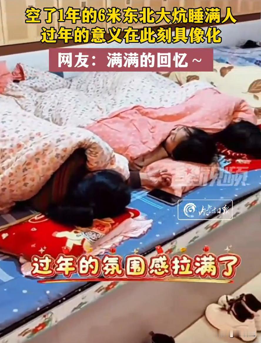 吵翻天!内蒙古通辽,一女子晒出回农村过年的生活,原本空了一年的6米大炕,在过年的这两天睡满了人,男女老少一大家人睡在大通铺里,可不少南方网友却表示:无法接受 六米宽的大通铺,被褥铺得满满当当,男女老少挨着挤着,横七竖八睡了一排。有的靠墙刷手机,有的半躺着唠嗑,小孩在人群里钻来钻去,脚丫子蹬到谁的脸也没人急眼 女子配文说,平时这炕空着,就等这几天,一大家子从天南海北赶回来,挤在一块儿睡,没人嫌挤,没人抱怨,只觉得暖和 原本,这是很温暖的场景,也勾起了不少人的回忆,有人看得眼眶发热,说这就是小时候的年味,那时候姥姥家的炕也这样,一躺下去能从炕头滚到炕尾,半夜起来上厕所得踩着人跨过去 但也有不少网友表示不能接受,又说大人和孩子不能睡在一起,又说没有隐私,总之就是各种的不满意,不接受 两边都没错,就是看问题的角度不一样 南方的房子讲究隔,卧室就是卧室,客厅就是客厅,关上门各过各的。北方的炕讲究通,一张炕能睡三代人,半夜谁蹬被子、谁说梦话、谁爬起来喝水,全在一个屋檐底下。这不是设计的问题,是过日子习惯的问题 在北方农村,尤其到了冬天,热炕头就是全家的中心。外面零下二十度,屋里烧着火墙,一家人窝在炕上嗑瓜子看电视,困了就地躺倒。什么隐私不隐私的,在那种环境里根本顾不上想