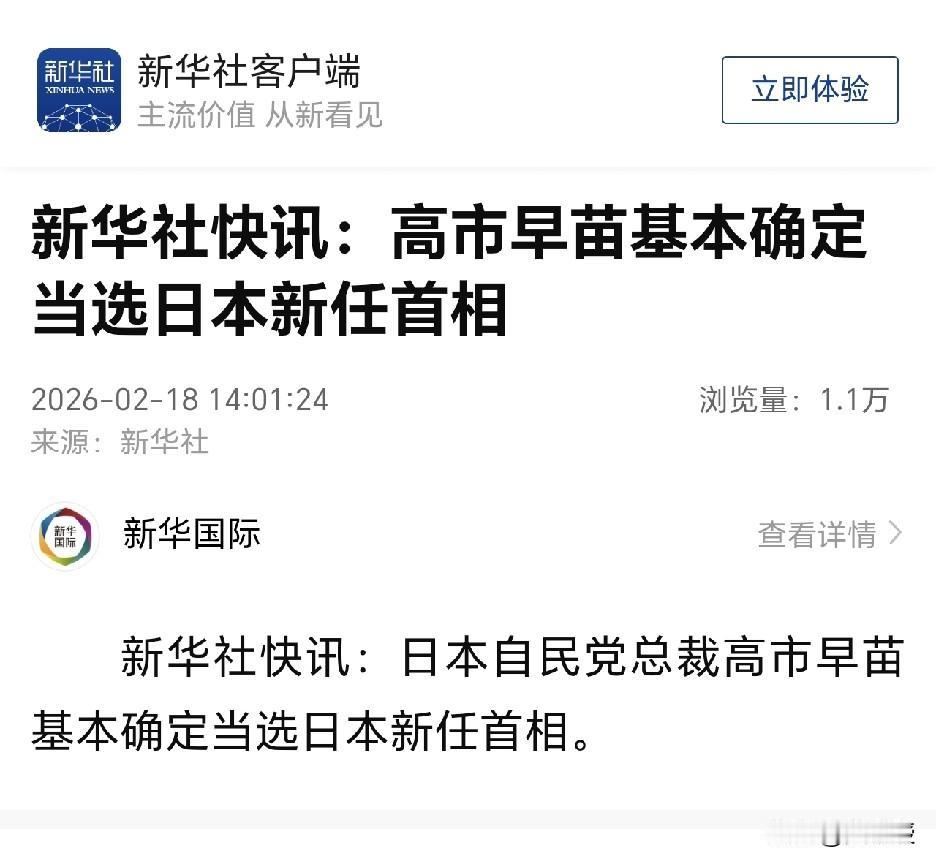 最新消息 新华社快讯:高市早苗基本确定当选日本新任首相
