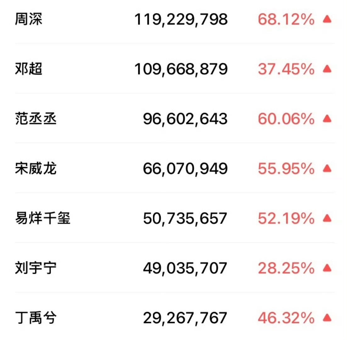 周深6年内已经上了央视春晚5次,其中3次独唱2次双人合唱,拿下过2次收视第一,主流实力流量都顶尖的全面发展歌手,今年不仅春晚节目收视第一,也是全场男性纯歌手微指第一,同期top,歌顶是这样的