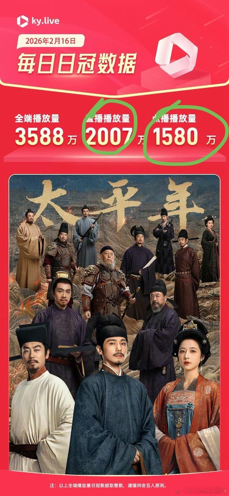 2.16酷云播放量⚠️酷云给的直播和点播数据应该是反了❗️1 太平年 -1842 成何体统 -2683 生命树 +249除夕夜一枝独秀地涨4 唐宫奇案之青雾风鸣 -3545 小城大事 -886 乡村爱情18 -967 年少有为 -2648 风过留痕 -309 夜色正浓 -11710 女神蒙上眼 +6011 罚罪2 -7912 玉茗茶骨 -5613 我的妈妈是校花 -114 突然的喜欢 -4815 有罪之身 -40