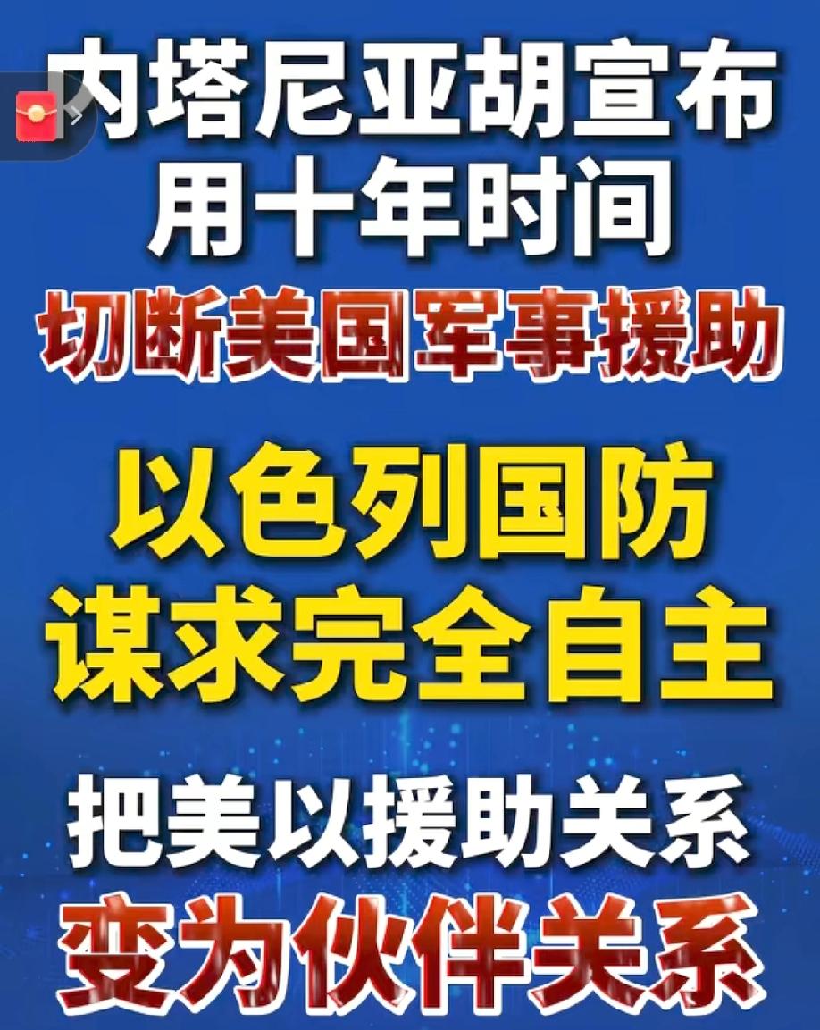 内塔尼亚胡打算用十年彻底摆脱美国的军事援助,走一条谋求完全自主的道路。只能说,以色列和美国军工切割的一瞬间,就是以色列走向灭亡的开始! 在下并非危言耸听,而是以色列天然的劣势实在是太过明显了! 第一,以色列并没有广袤的领土,这就使得他在与外国的军事冲突中不得不采取御敌于外的策略,所以我们常常看到以色列打到别的国家领土之内去做防御性的攻势,说简单明了点就是到别国的领土里面去反击别国的进攻! 这其实和入侵并没有区别! 最大的原因就是以色列这个国家的天然劣势太明显,他太小了,没有战略缓冲区,人口又集中在特拉维夫和拉法一线之中,这就使得以色列在遭受攻击的时候一旦防御性武器弹药消耗殆尽,那整个以色列面临的就是史无前例的灾难! 去年的伊以战争就是一个活生生的例子,当伊朗的导弹攻入以色列本土的时候,以色列人才彻底的慌了神,他们引以为傲的防空导弹系统并不能保证他们的安全! 第二,以色列资源匮乏严重制约了其发展! 中东各国,除了石油富足以外,其余的资源其实都是相对应匮乏的。以色列也不例外! 粮食,淡水,矿产,林业资源都是匮乏的。这就使得以色列不得不从外国进口资源以满足以色列本土发展的需要! 在这里,以色列的劣势就很明显了,红海作为以色列本土最重要的航运通道实则是掌控在以色列的死对头胡塞武装的手上! 这就好比以色列的经济军事命脉的通道都在别人的手上,人家一旦封锁了红海,以色列全国倒霉! 以色列看似强大,天然的劣势就注定了其发展的道路已经被堵死了,可以说如今以色列在中东之所以可以呼风唤雨完全得益于美国的背后鼎力支持,以色列如今想跳出美国的框架敢独立自主,个人感觉以色列这是在作死! 一旦脱离了美国的支持,以色列就是众矢之的,中东各国苦以色列久矣,没了美国,你猜中东各国会不会群殴以色列?