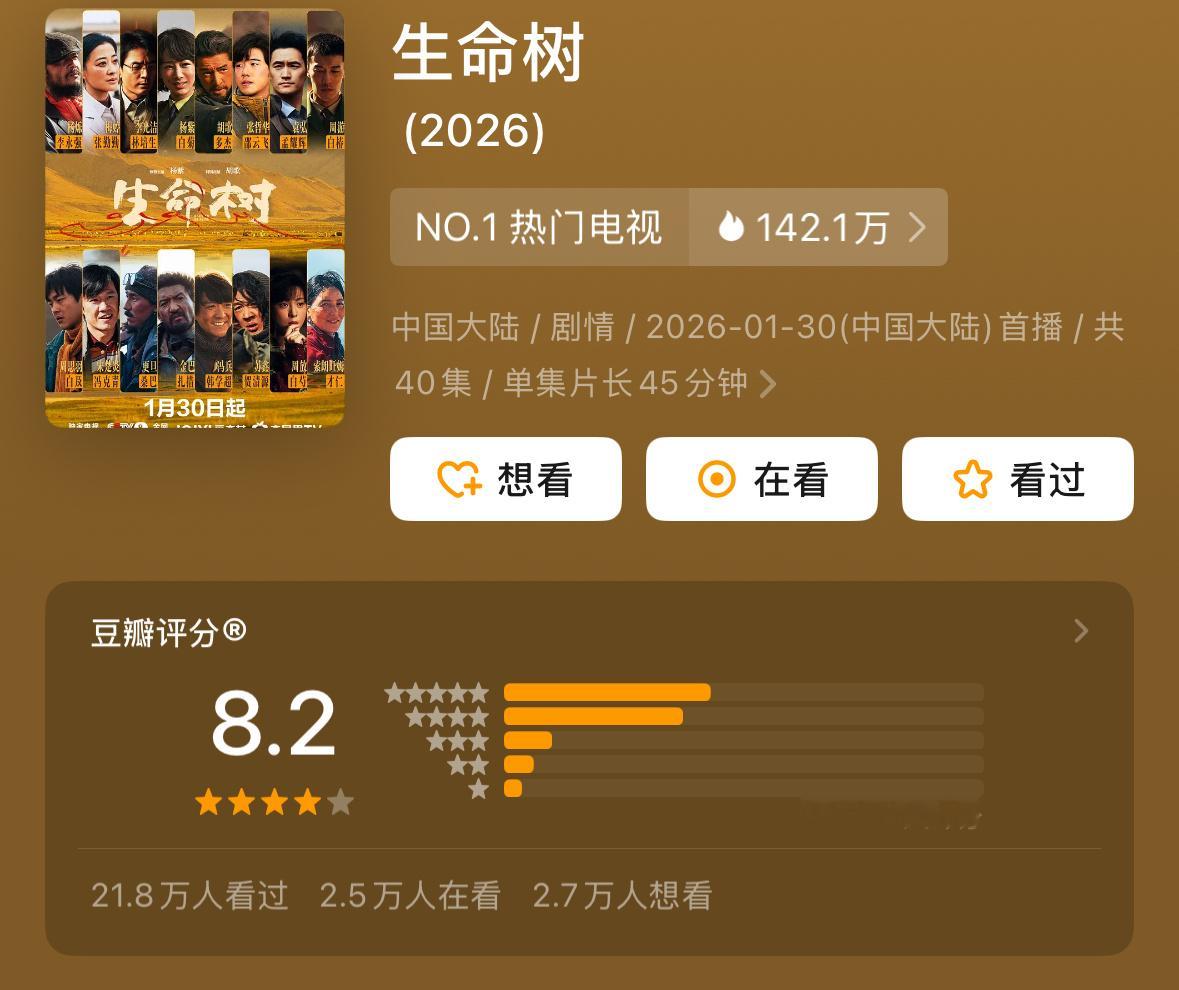杨紫生命树豆瓣评分涨到8.2了。这些天有很多围绕这部剧的讨论,客观说,你们觉得这部剧是不是好剧?