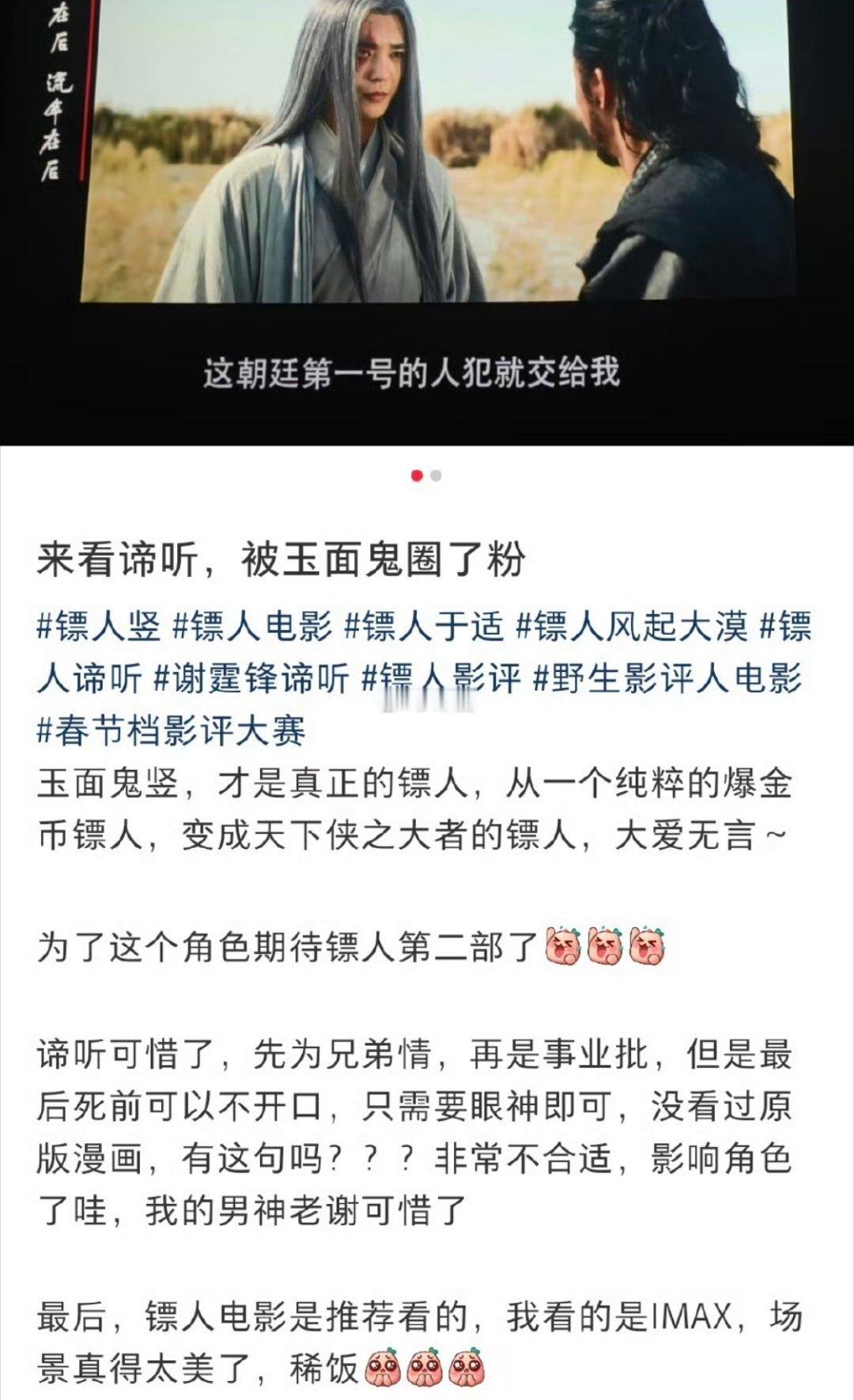 镖人口碑 镖人的画面真的可以吹爆,大漠实景加上细腻光影,把武侠的美感全拍出来了。黄沙夜色烈火白雪,帧帧都是壁纸,必须大银幕感受。