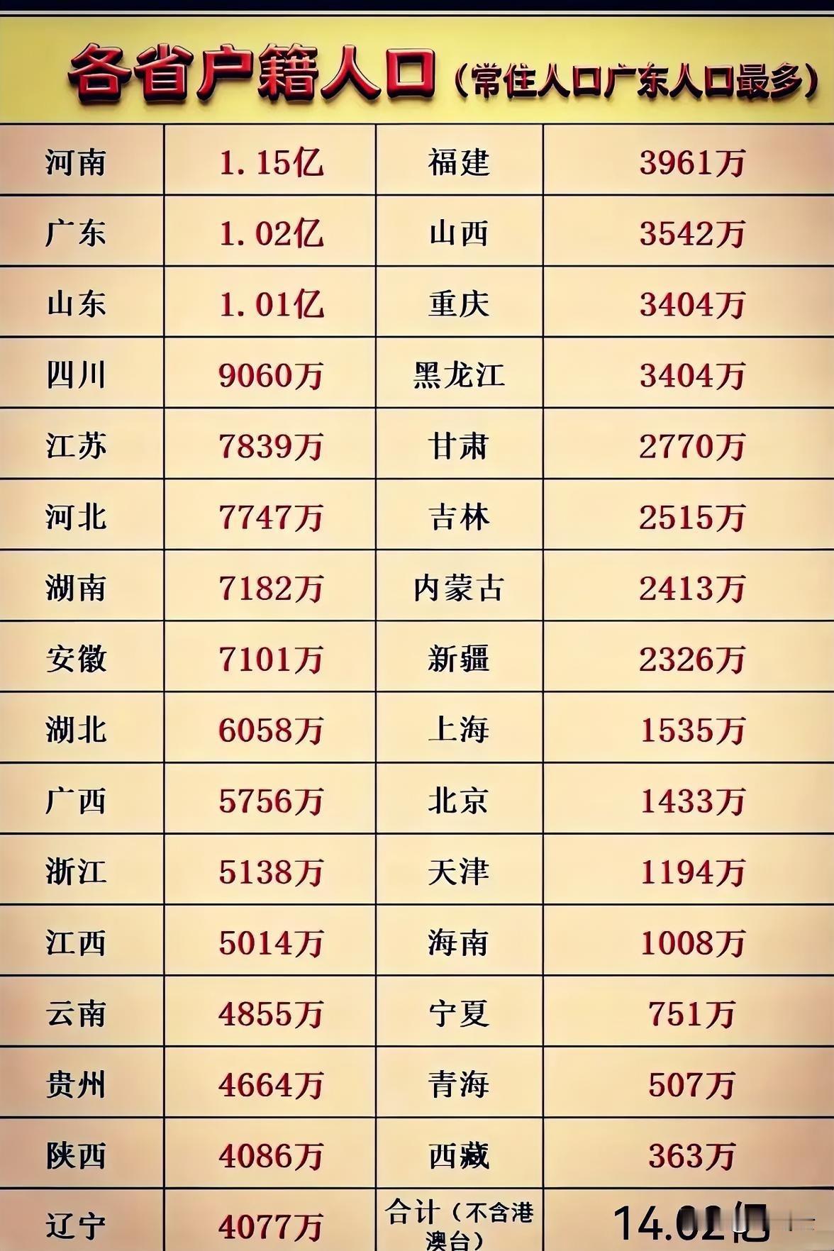 未来哪些地市人口最多?2025年全国各省市户籍人口排行榜揭秘!常住人口最多的是广东省。未来人口涌向最多的城市大揭秘!谁是顶流“吸人狂魔”。有人的地方就有经济活力!速速围观揭秘详细内容![招财进宝][招财进宝][赞][赞] 人口流动大洗牌,未来城市格局已悄悄定调。谁能成为人气顶流,疯狂收割年轻人?答案藏在四大城市群里,每座都是流量收割机。[点亮平安灯][点亮平安灯] 答案就在这里!上海、北京、深圳、广州稳居第一梯队,凭高薪、资源、机遇原地封神,是人才追梦的终极目的地。深圳堪称科创卷王,不看出身只看实力,常年霸榜人口净流入榜首。[招财进宝][招财进宝] 长三角的杭州、苏州,数字经济与制造业双开花,宜居又宜业,年轻人疯狂涌入。成渝双子星一路狂飙,成都以安逸生活+强劲产业,成为西部人气天花板,重庆则靠体量与烟火气圈粉无数。[赞][赞] 武汉、郑州、合肥等中部强市强势上分,凭借区位优势与政策红利,成为区域人口“蓄水池”。[给力][给力] 有人奔赴繁华,有人偏爱安逸。未来人口向核心城市集聚已成定局,这些城市凭实力圈粉无数,稳稳拿捏时代流量密码。[福][福] 欢迎关注@叮咚云 将优先为粉丝职业规划指导,为你定制最适合的就业择业方案!欢迎留言交流讨论。[来看我][来看我] 免责声明:图片来自网络,仅供参考