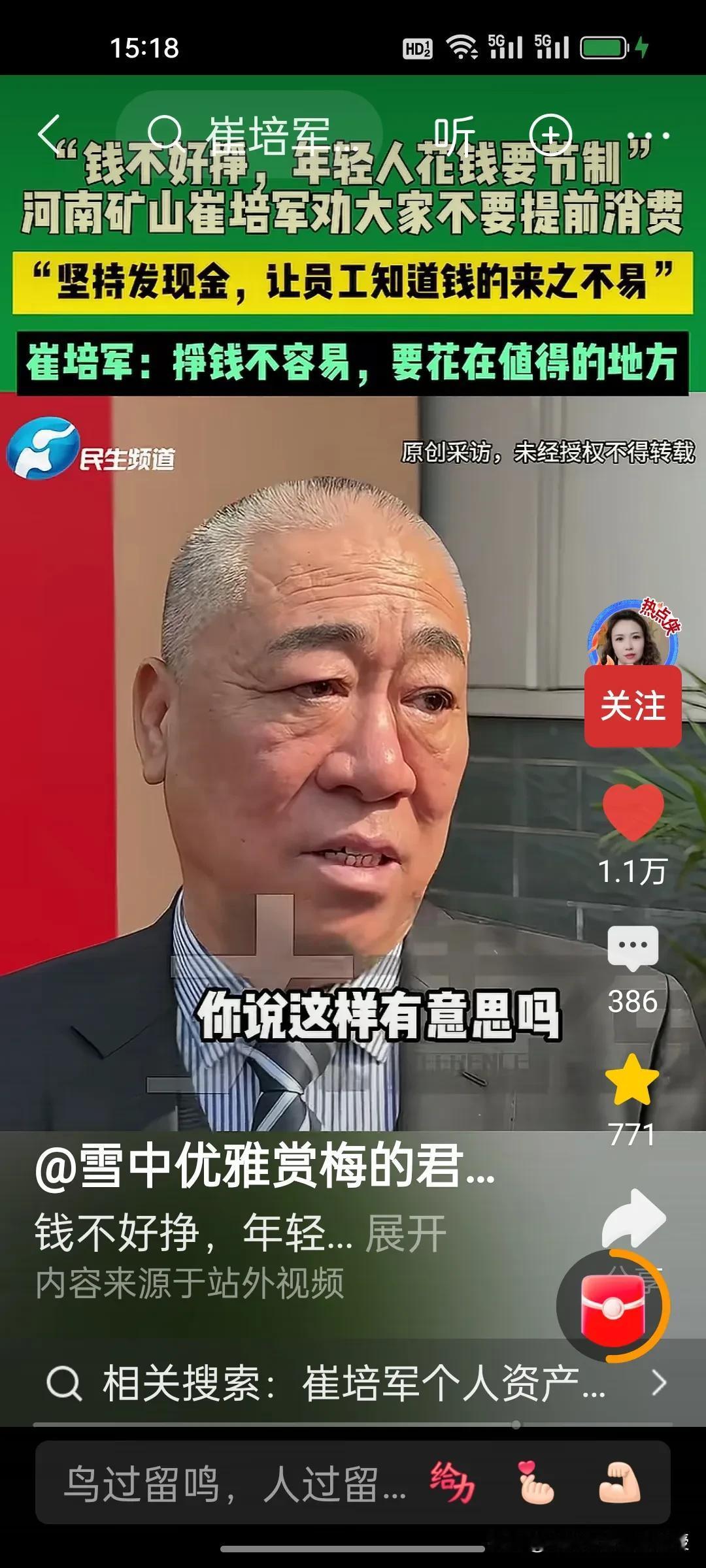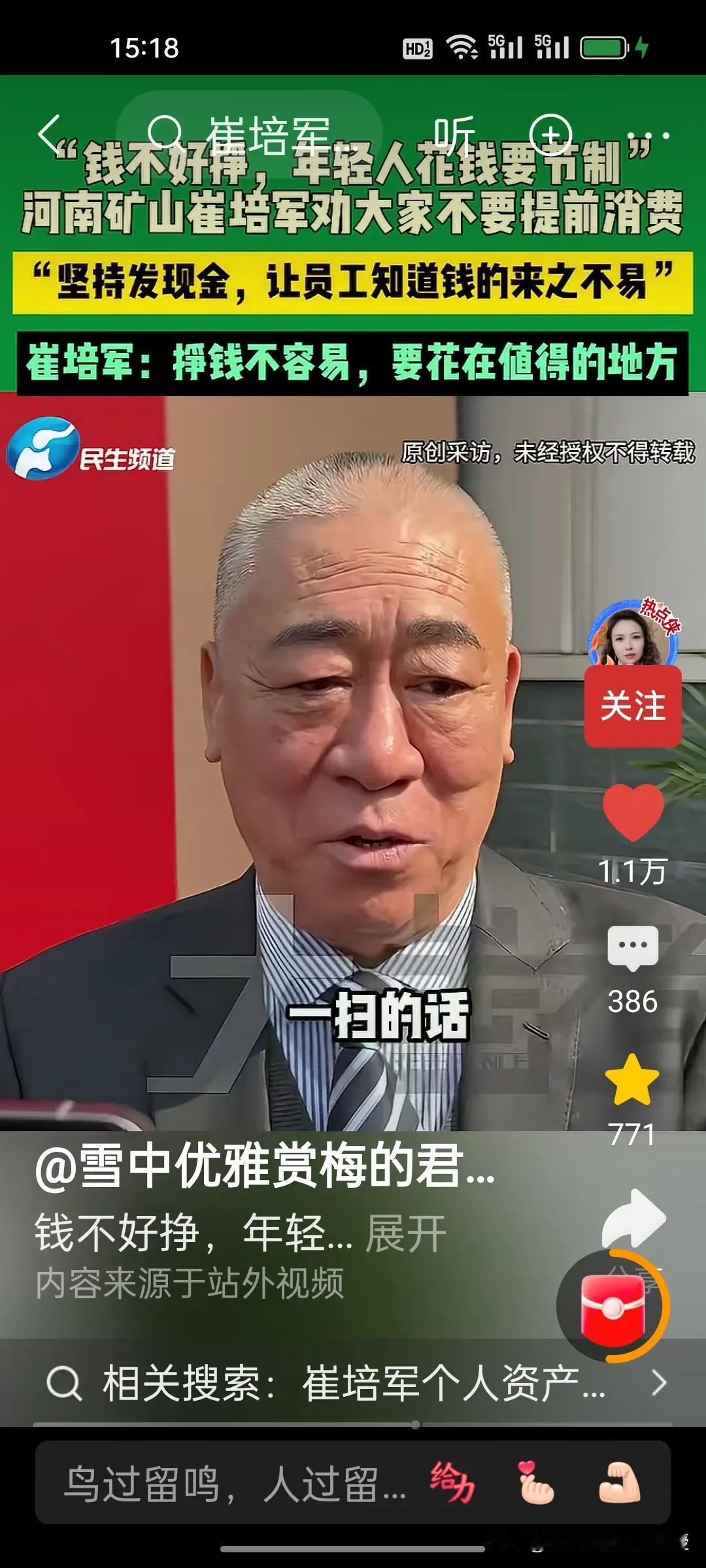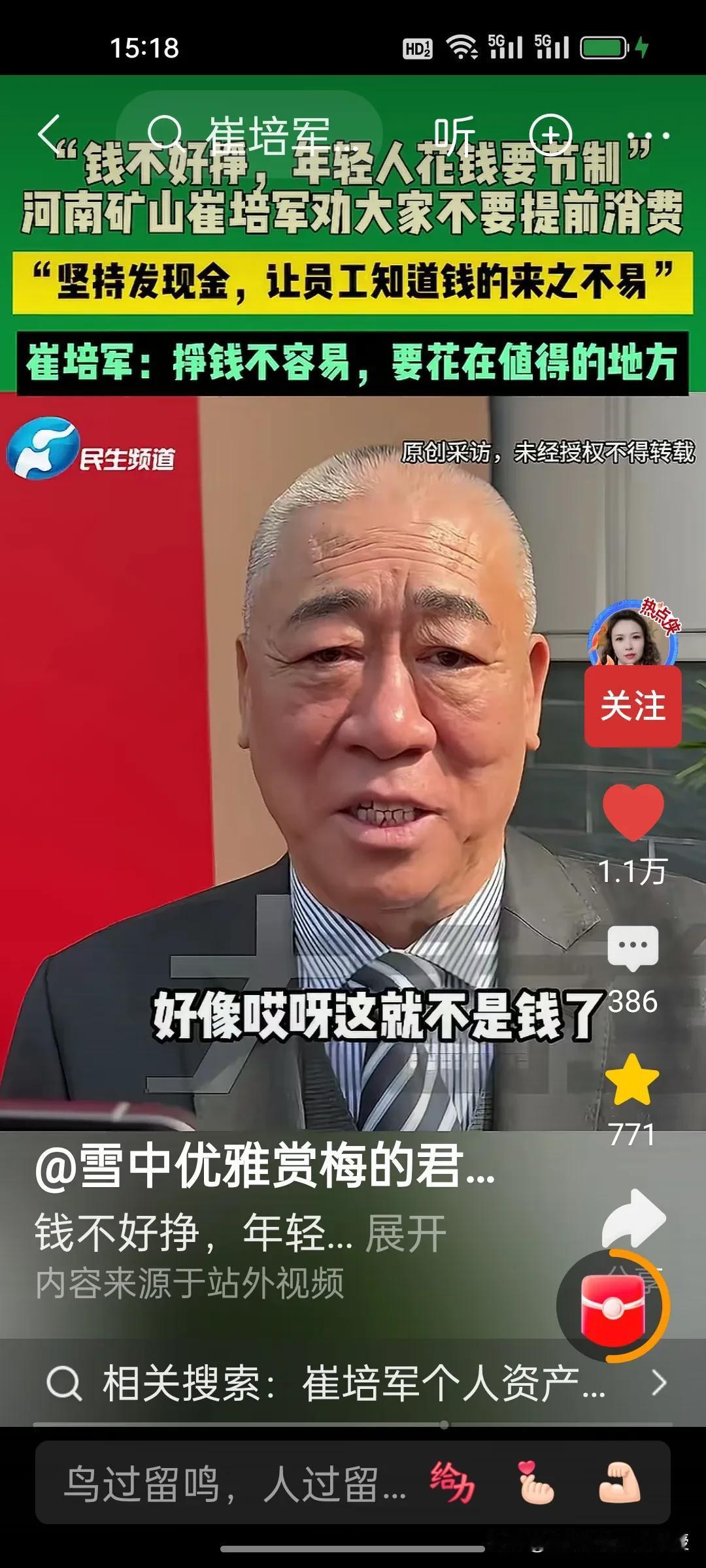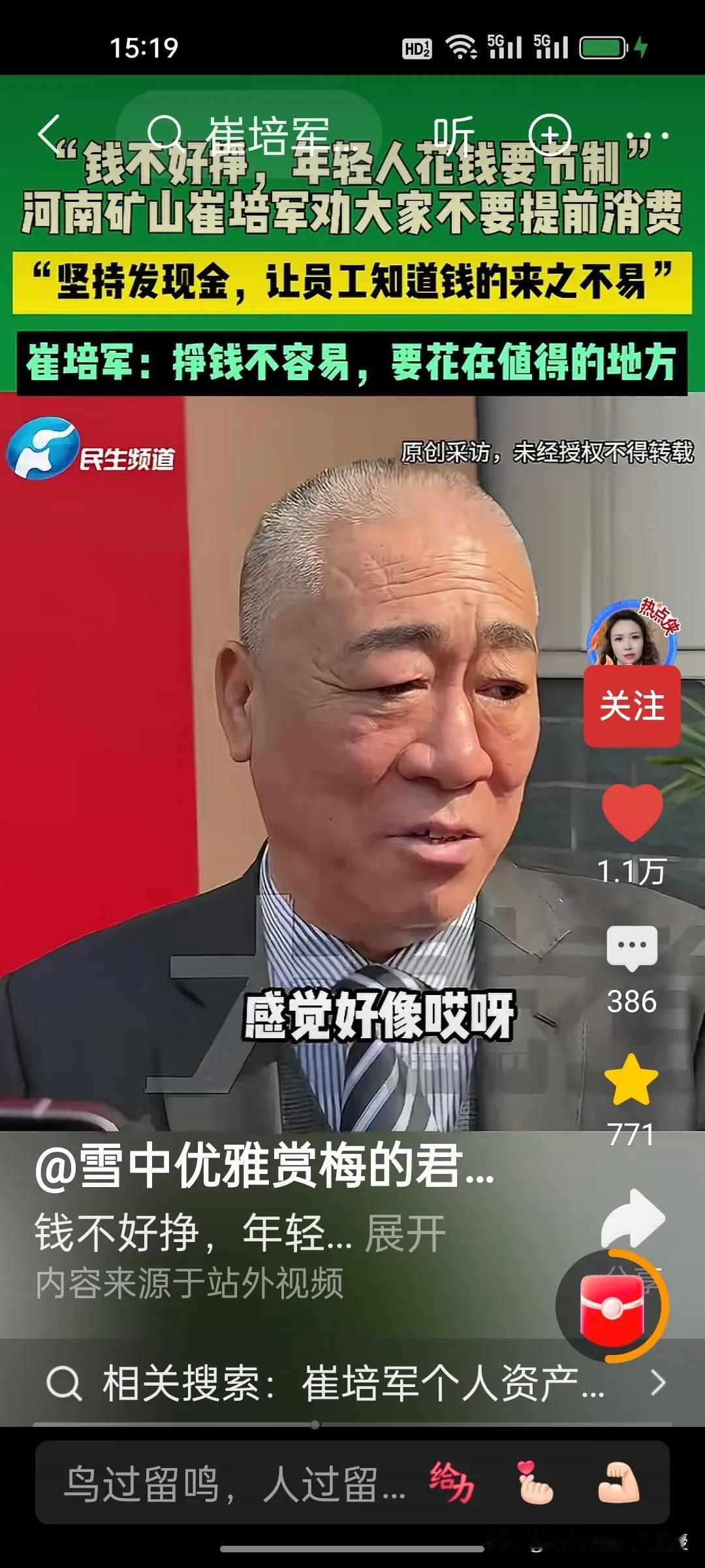 为什么崔培军坚持每年年会上发现金?答案戳中了所有年轻人的痛点! 河南矿山老板崔培军,每年年会都给员工发现金,一沓沓红钞票堆在桌上,员工亲手接过。这是让员工觉得企业有钱吗?崔培军道出了真相:“钱在手机上一扫,感觉不是钱;坚持发现金,让员工知道钱来之不易,要花在值得的地方。” 这句话,戳中了多少人的消费痛点?数字支付让我们对钱的感知变弱,花呗、信用卡让提前消费变得理所当然,而现金的厚重感,能让我们重新意识到:每一分钱,都是汗水换来的。 崔培军的做法,不仅是发福利,更是在给员工上一堂财商课。当我们亲手触摸到纸币的温度,才会真正懂得节制和珍惜。