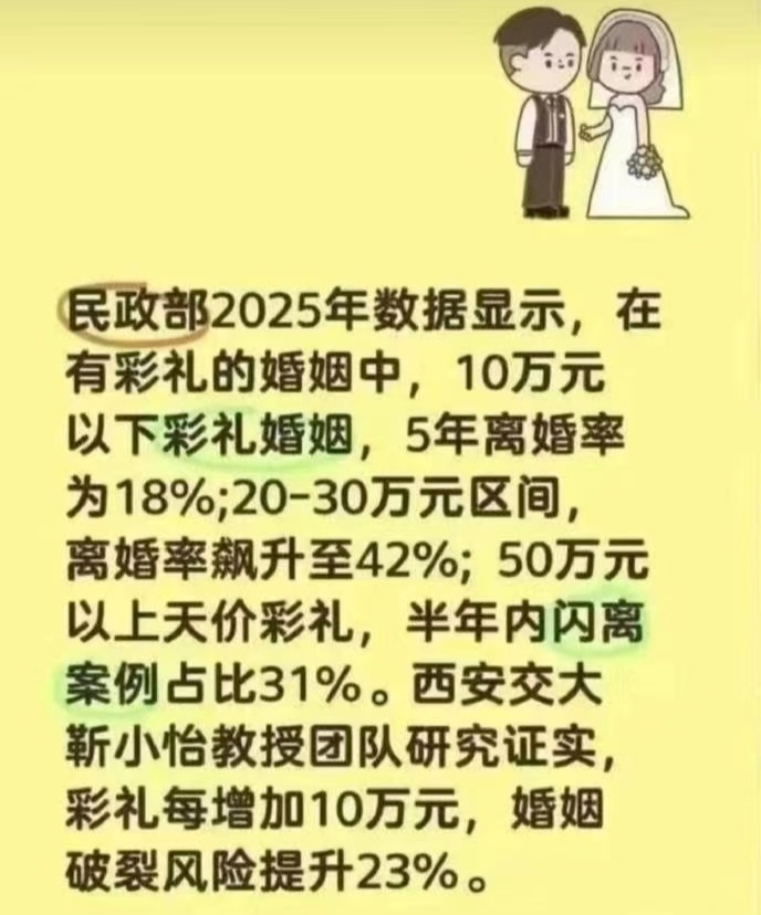 不要借民政部编造谣言了。虽然理论上彩礼高,离婚率也高