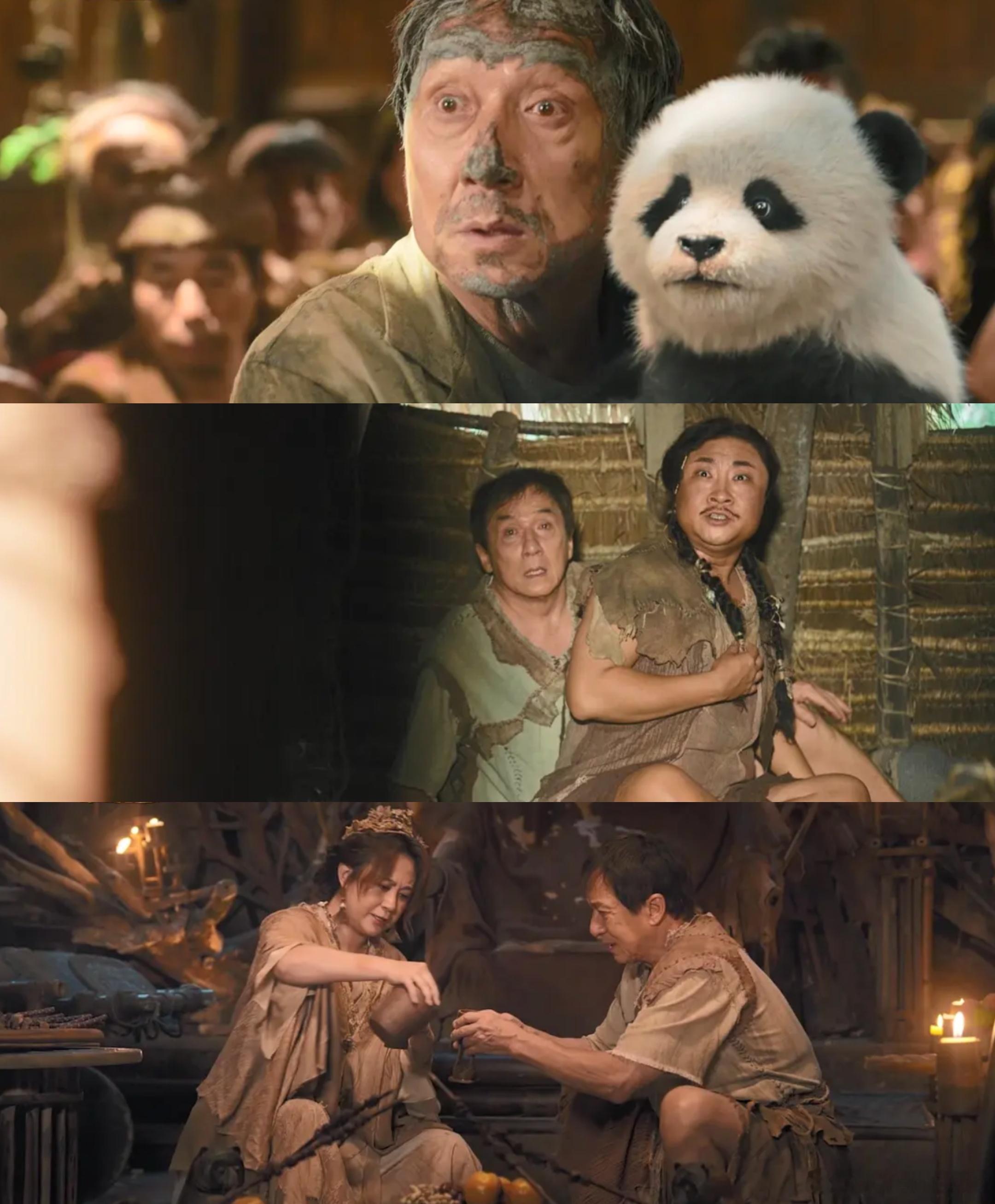 故事一点都不复杂,一开始就远离现实。 成龙大哥和胡胡本打算去熊猫基地,未曾想来到了一个奇异世界,这里的人个个野人打扮,过着原始生活。