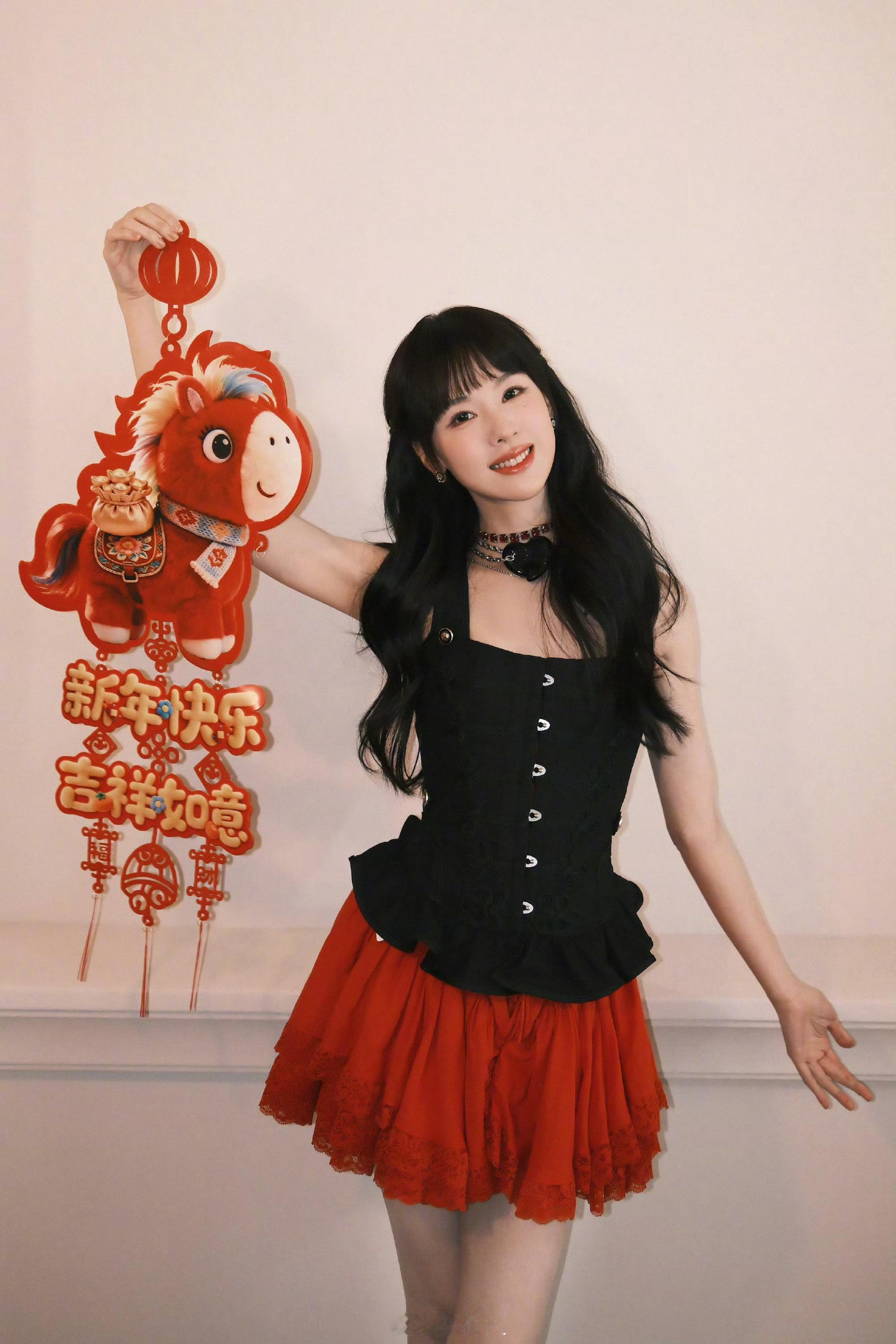 迪丽热巴穿红色太惊艳新年红色长裙照太惊艳了就是硬美没话讲!巴巴新的一年也要一直红