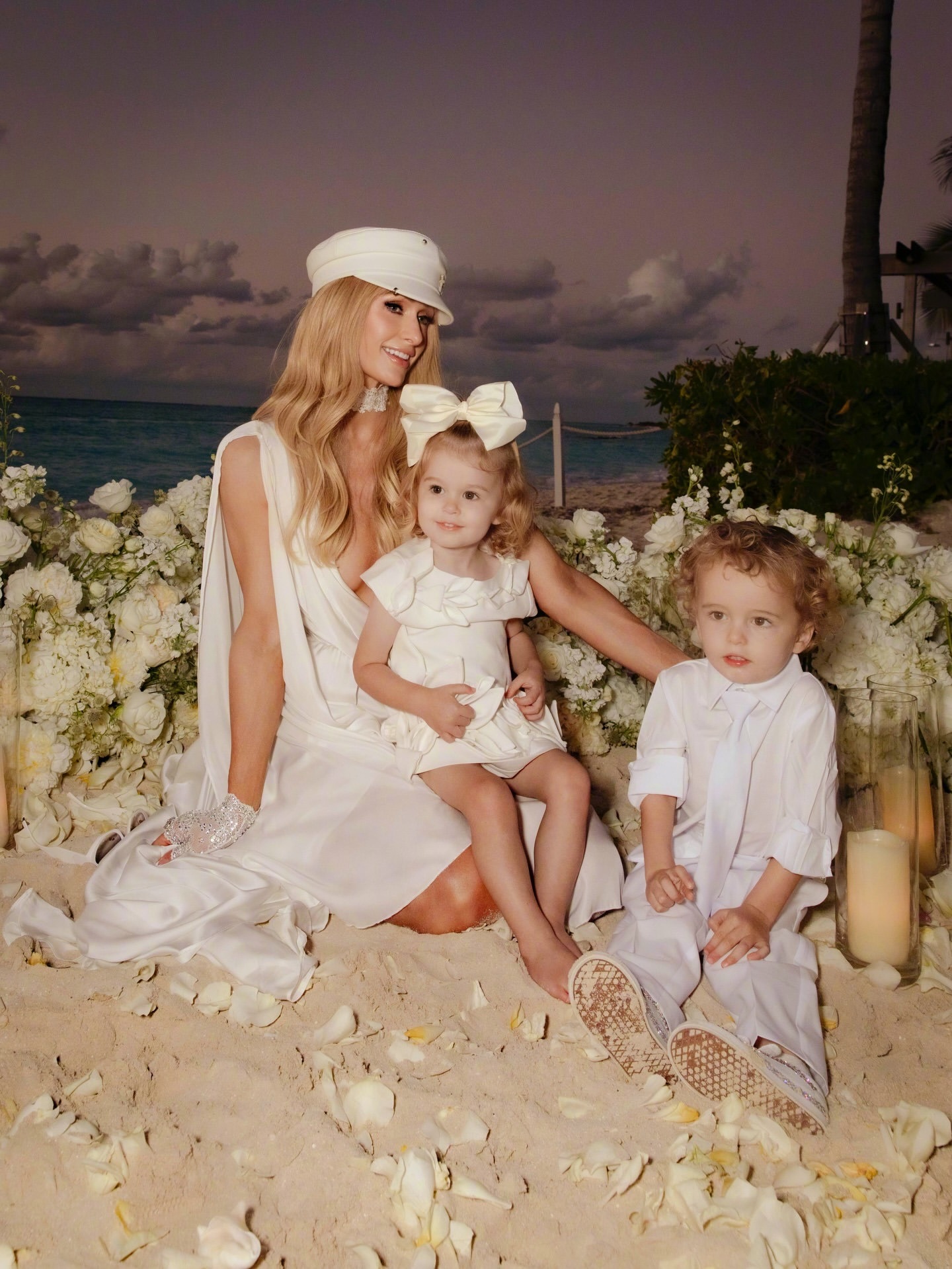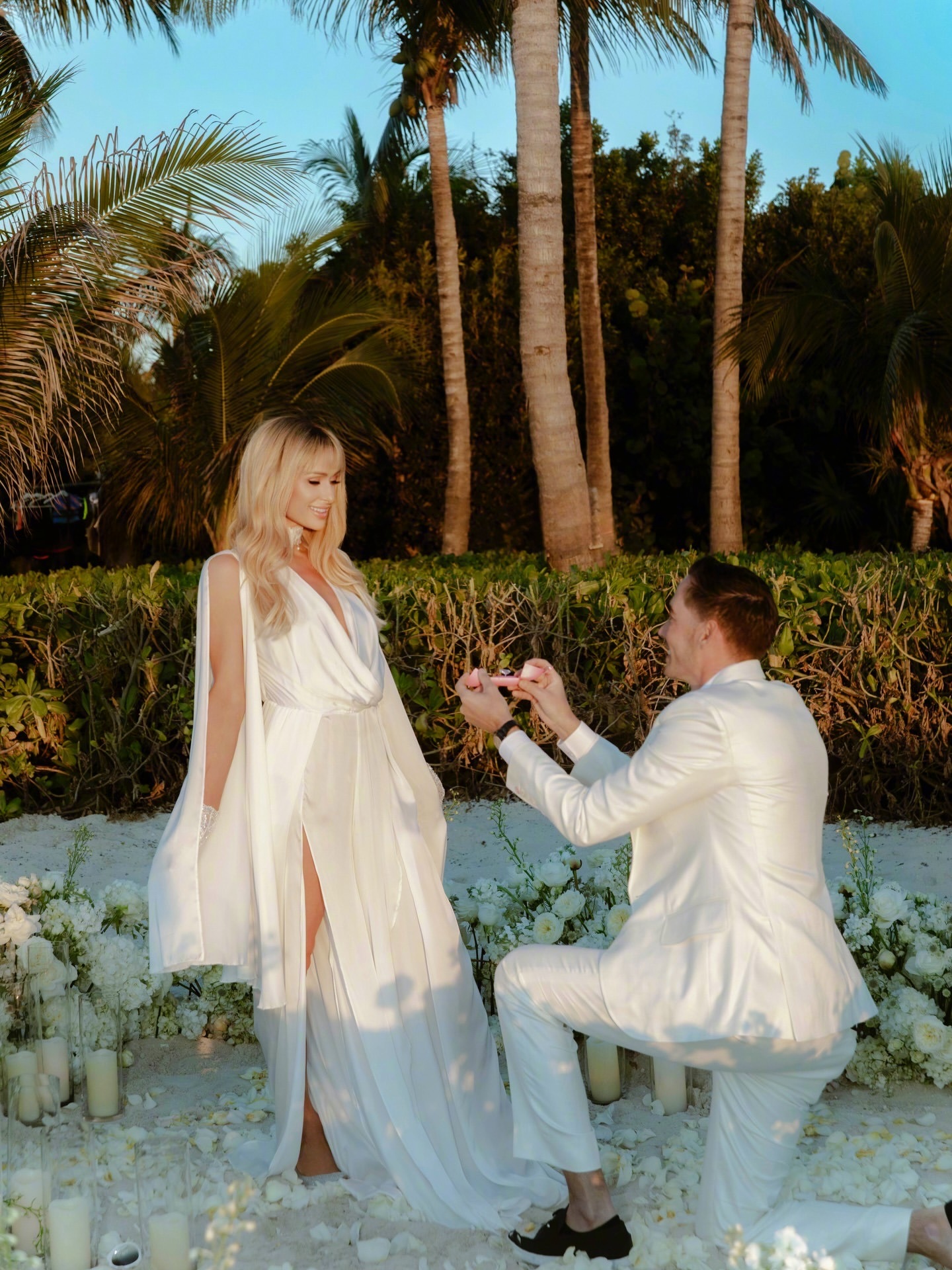 情人节,希尔顿大小姐和爱夫又搞了一场求婚仪式,在俩孩子的见证下。