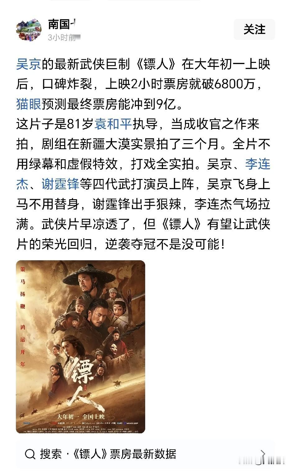 《镖人》这么厉害 票房 最终可以多少钱?