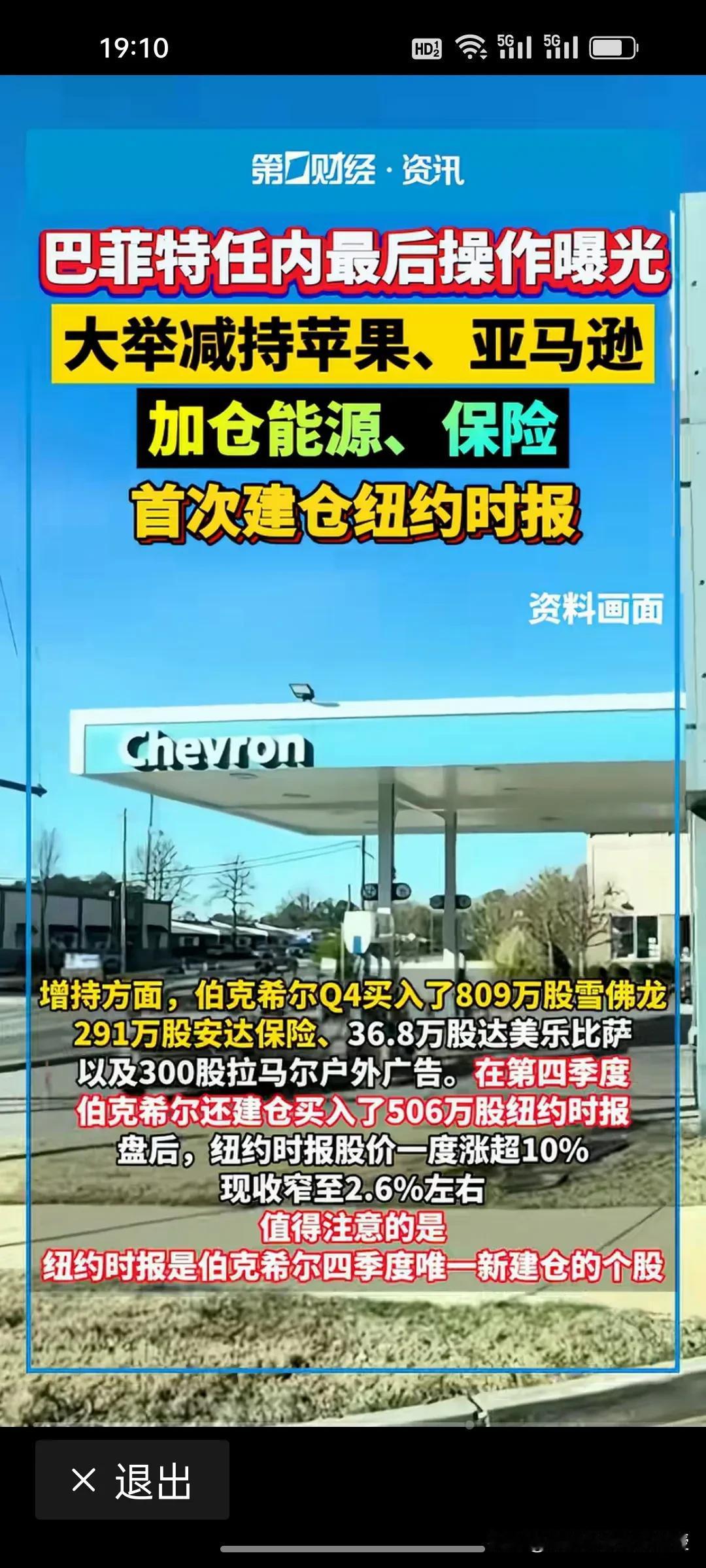 巴菲特最后调仓:减持科技,押注“AI的底层”? 今天,巴菲特任内最后一次调仓公布,信号太明确了:减持苹果1029万股、亚马逊772.4万股,却加仓雪佛龙809万股、安达保险291万股,还首次建仓纽约时报506万股。 有人说这是“看空科技”,但更像是对AI本质的清醒预判——AI的尽头就是电力,能源才是算力时代的真正底座;而媒体,也将是AI内容应用的核心阵地。 当市场狂热追逐AI概念时,股神却转身拥抱能源、保险和媒体这些“硬资产”。这不是否定AI,而是提醒我们:真正的价值,永远藏在被忽视的确定性里。
