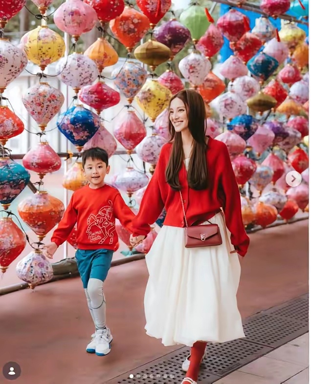 陈凯琳和仔仔一起过年行街街去,满满的过年气氛。陈凯琳红白的搭配非常有过年的氛围,满满的少女感,根本不像三个孩子的妈妈呀